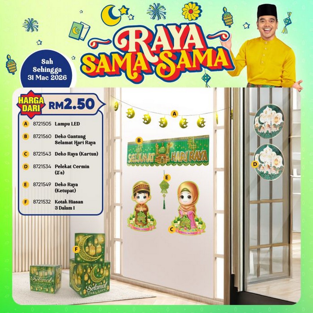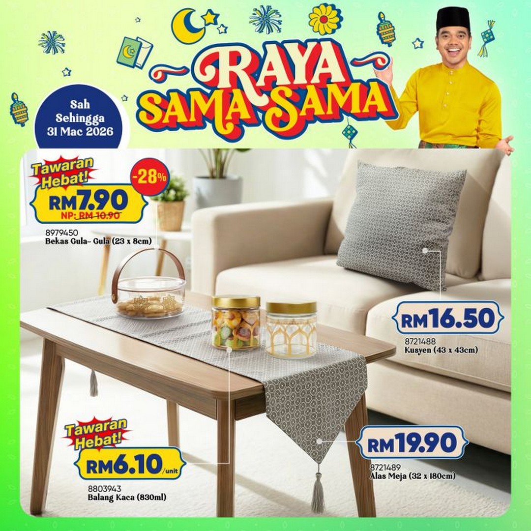 To maximise this promotion, shoppers should consider visiting earlier in the campaign period. Festive-themed items, especially décor and sampul raya designs, tend to sell out quickly as Raya approaches. Popular colours and patterns are often the first to go.