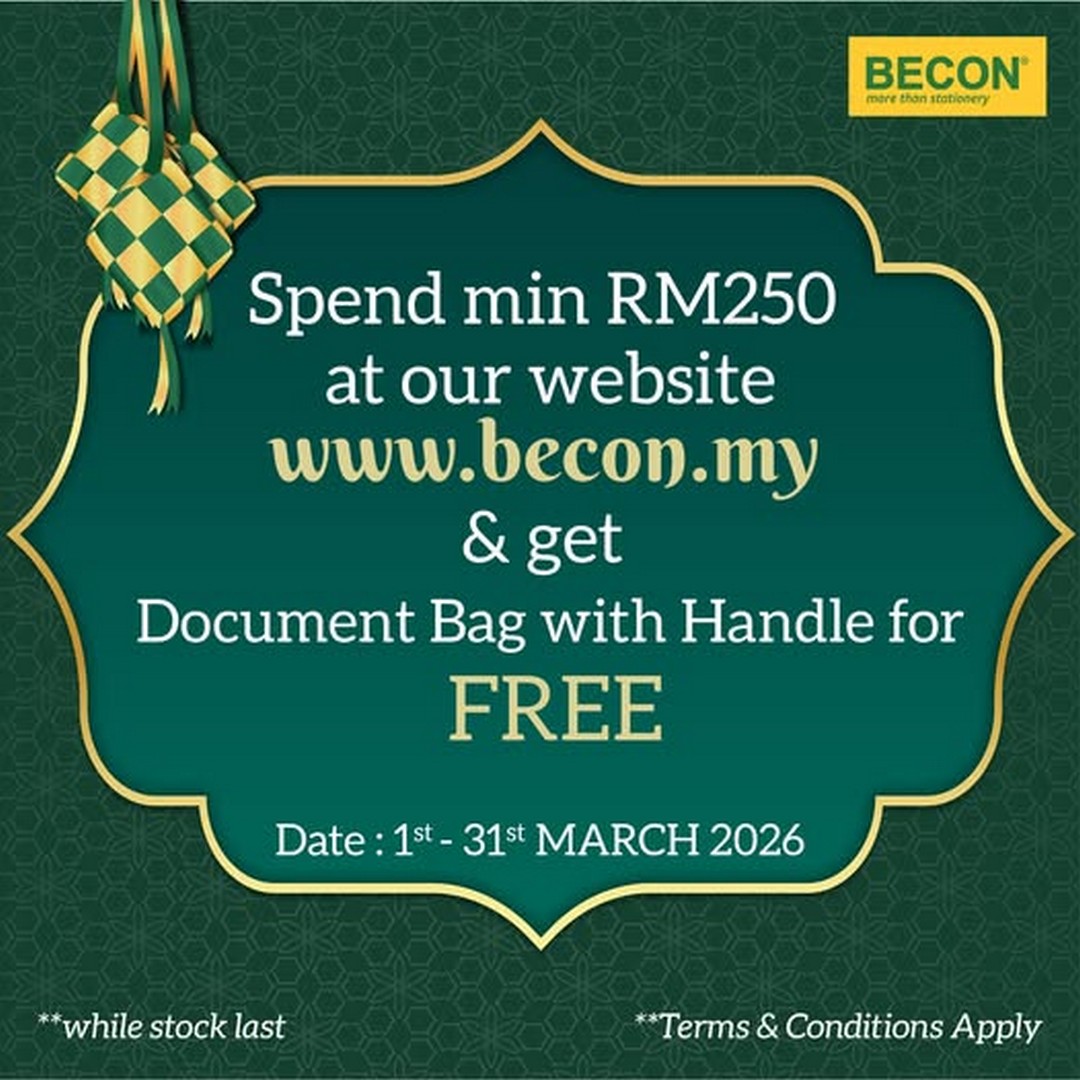 For anyone who enjoys stocking up on quality stationery, planners, art materials or office essentials, this latest campaign from Becon Stationery is worth a proper look. From 1–31 March 2026, they are running a special exclusive online promotion that rewards customers with a practical free gift – a Document Bag with handle – when they spend a minimum of RM250 in a single online transaction.