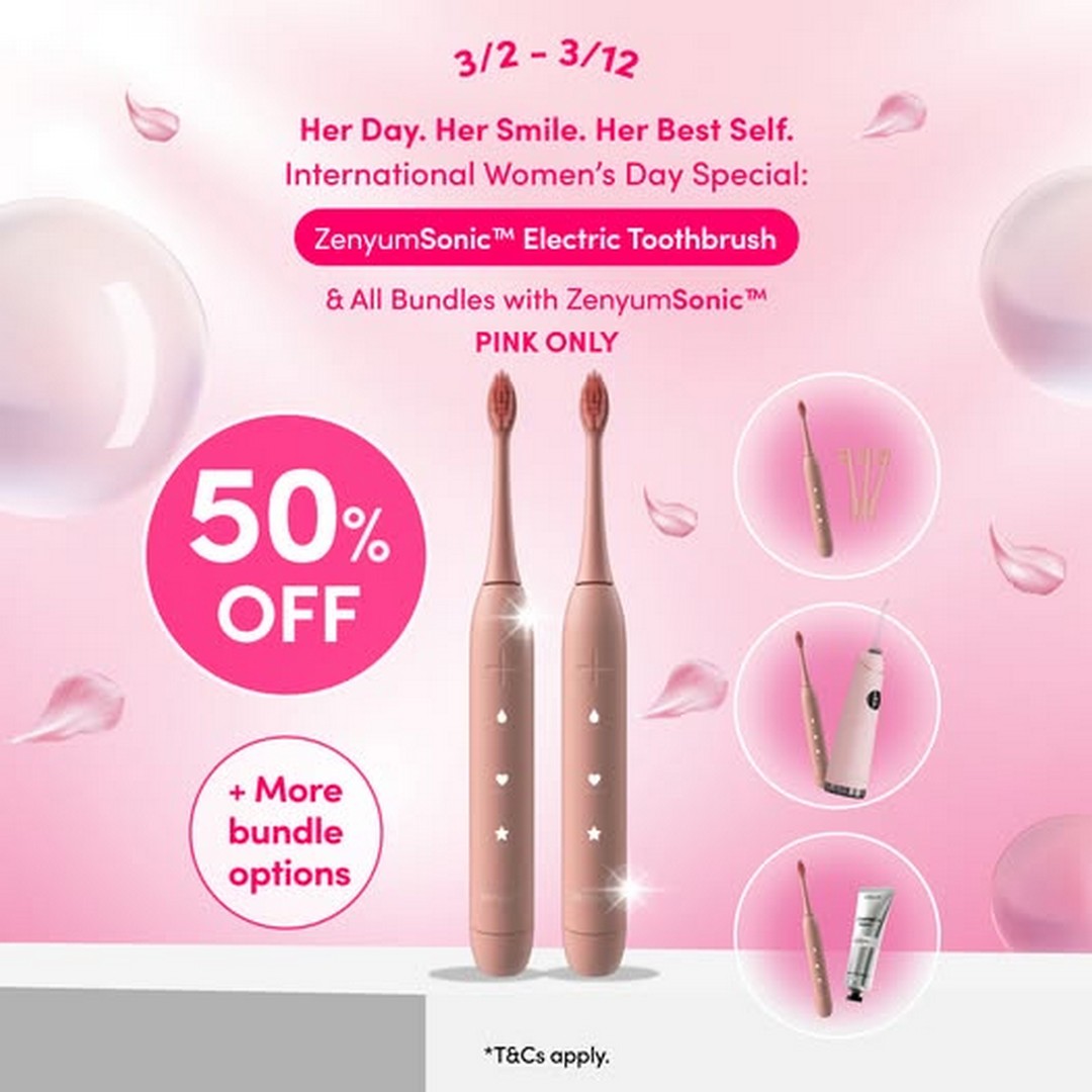 With all these benefits, this is one promotion that deserves attention. Whether they are investing in their own smile or gifting it to someone who inspires them, the 50% off Pink ZenyumSonic™ Electric Toothbrush and bundles is an opportunity that combines health, style, and empowerment in one neat package. Don’t miss out on this chance to celebrate women and the power of a confident smile.