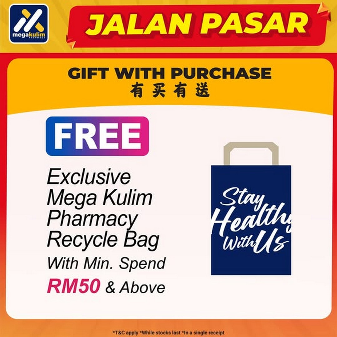 On top of that, customers who spend a minimum of RM50 in a single receipt will receive a free exclusive Mega Kulim Pharmacy recycle bag.