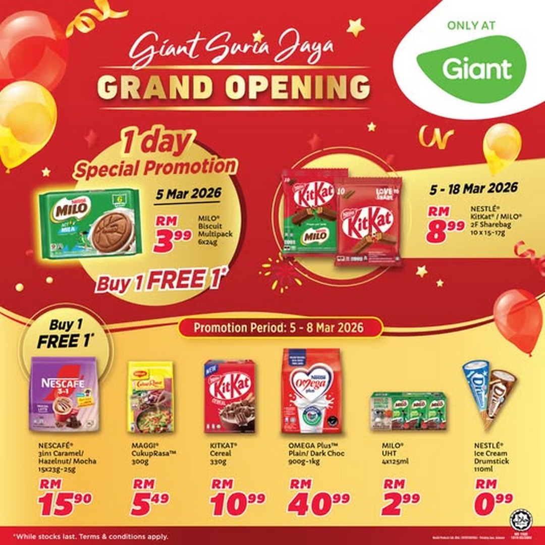 For residents near Suria Jaya, 5 March 2026 is not just another weekday. It marks the arrival of a new Giant branch, complete with opening excitement and special Nestlé promotions. In a time when grocery expenses are steadily rising, strategic shopping during store launches is one of the smartest ways to save.