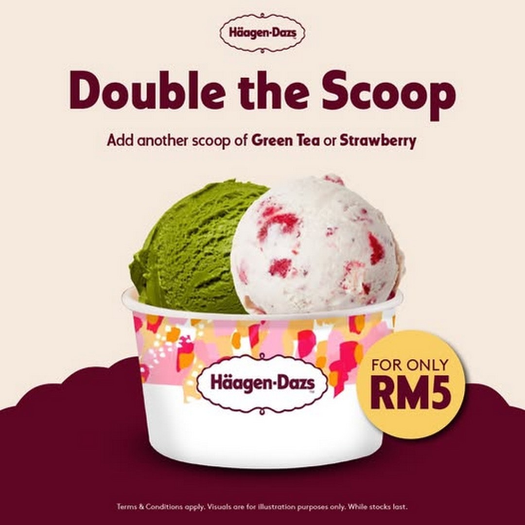 If there’s one thing Malaysians know, it’s that life is better with a little indulgence now and then—and Häagen-Dazs has just the treat to satisfy that sweet craving. Starting from 5 March 2026, Häagen-Dazs Malaysia is offering a delightful Double Scoop Promotion, giving dessert lovers a chance to elevate their ice cream experience without putting too much strain on their wallets. For just RM5, fans can add an extra scoop of their favourite flavours—Green Tea or Strawberry—to their single-scoop order, effectively doubling the happiness in every cup or cone.