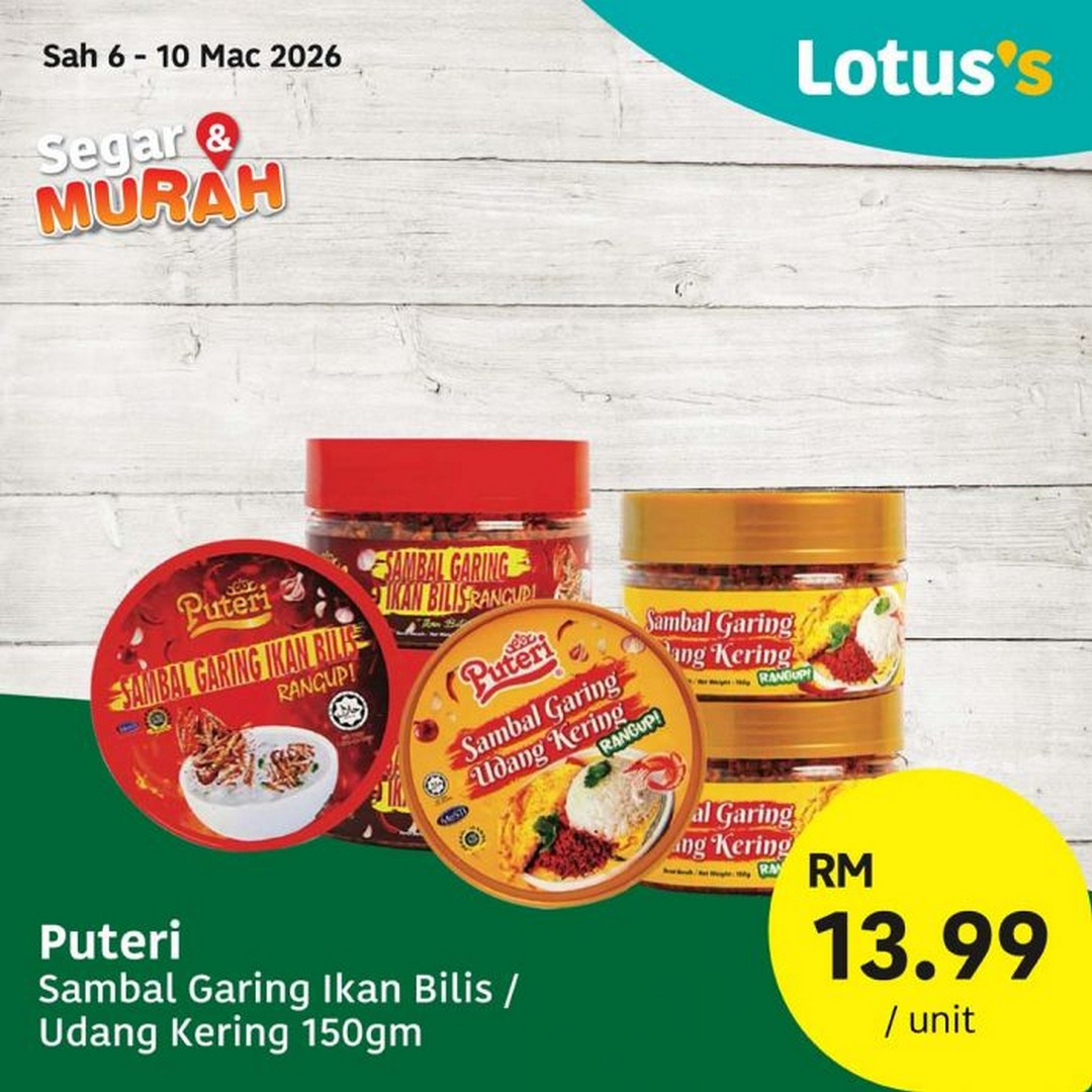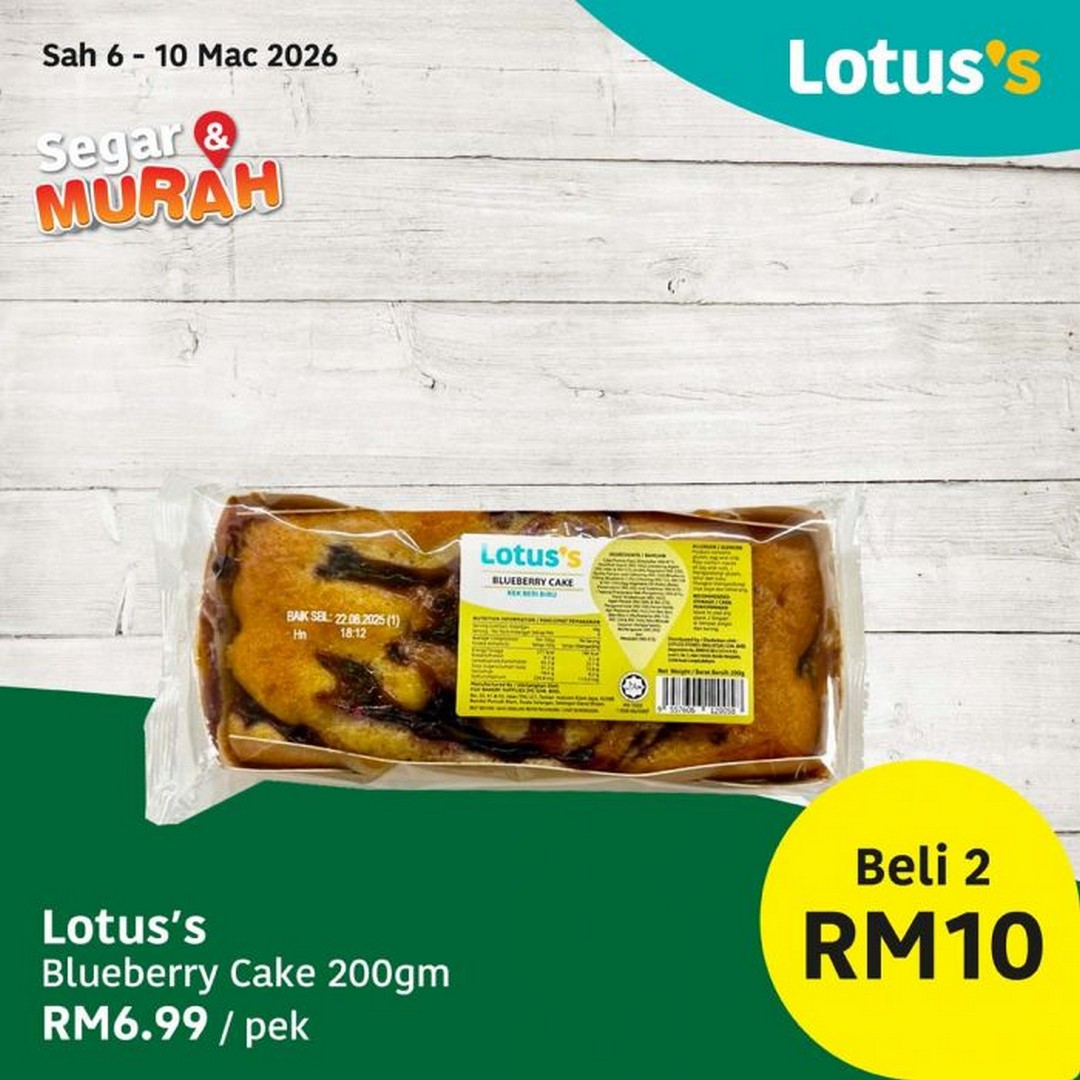 Lotus’s has also curated a fantastic selection of bakery and pantry items to complement your cooking. For instance, the Puteri Sambal Garing Ikan Bilis or Udang Kering (150gm) is priced at RM13.99 per unit, adding crunch and flavour to everyday meals. Afternoon teatime is a little more indulgent with the Lo’Ti Puff 4 Biji Aneka, which costs RM6.99 per pack or two packs for RM10. Those with a sweet tooth won’t want to miss the Lotus’s Blueberry Cake 200gm, priced at RM6.99 per pack, or two for RM10. These bakery deals are also valid from 6th to 10th March 2026, making it an ideal time to stock up for home treats or to share with friends and family.