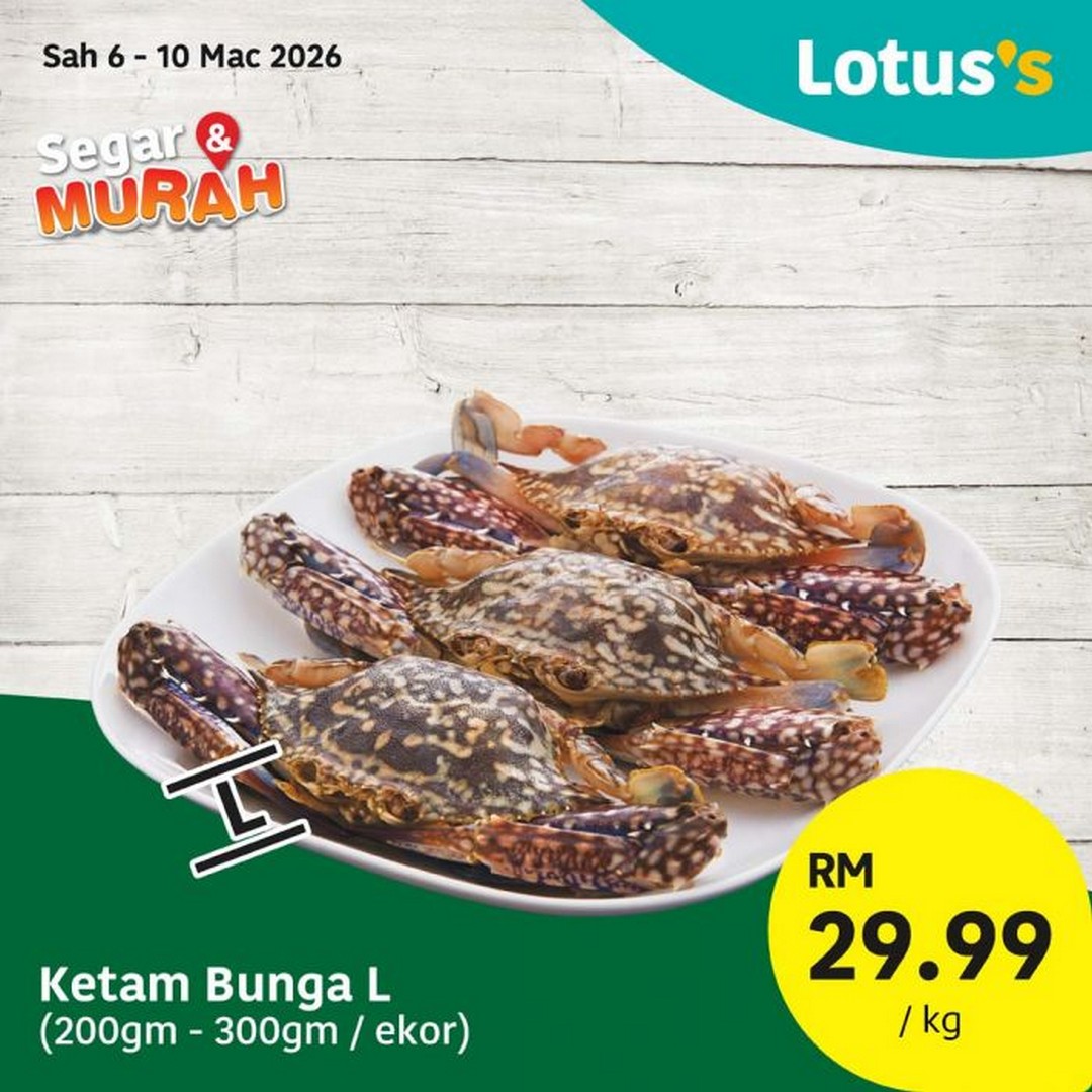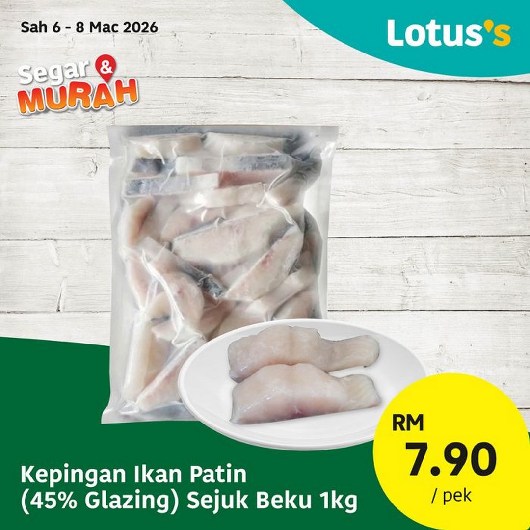 Seafood enthusiasts are in for a treat. Lotus’s has curated an impressive selection of fresh catches at prices that make stocking up both easy and budget-friendly. For instance, the Ketam Bunga L (200gm – 300gm/ekor) is going for only RM29.99 per kilogram, while the Sotong Putih M is priced at RM32.99 per kilogram. For those planning quick and simple meals over the weekend, the Kepingan Ikan Patin (45% Glazing) Sejuk Beku 1kg is available at just RM7.90 per pack. These deals run from 6th to 10th March 2026, with some special seafood promotions valid from 6th to 8th March 2026, so timing your visit is essential to secure the freshest picks.