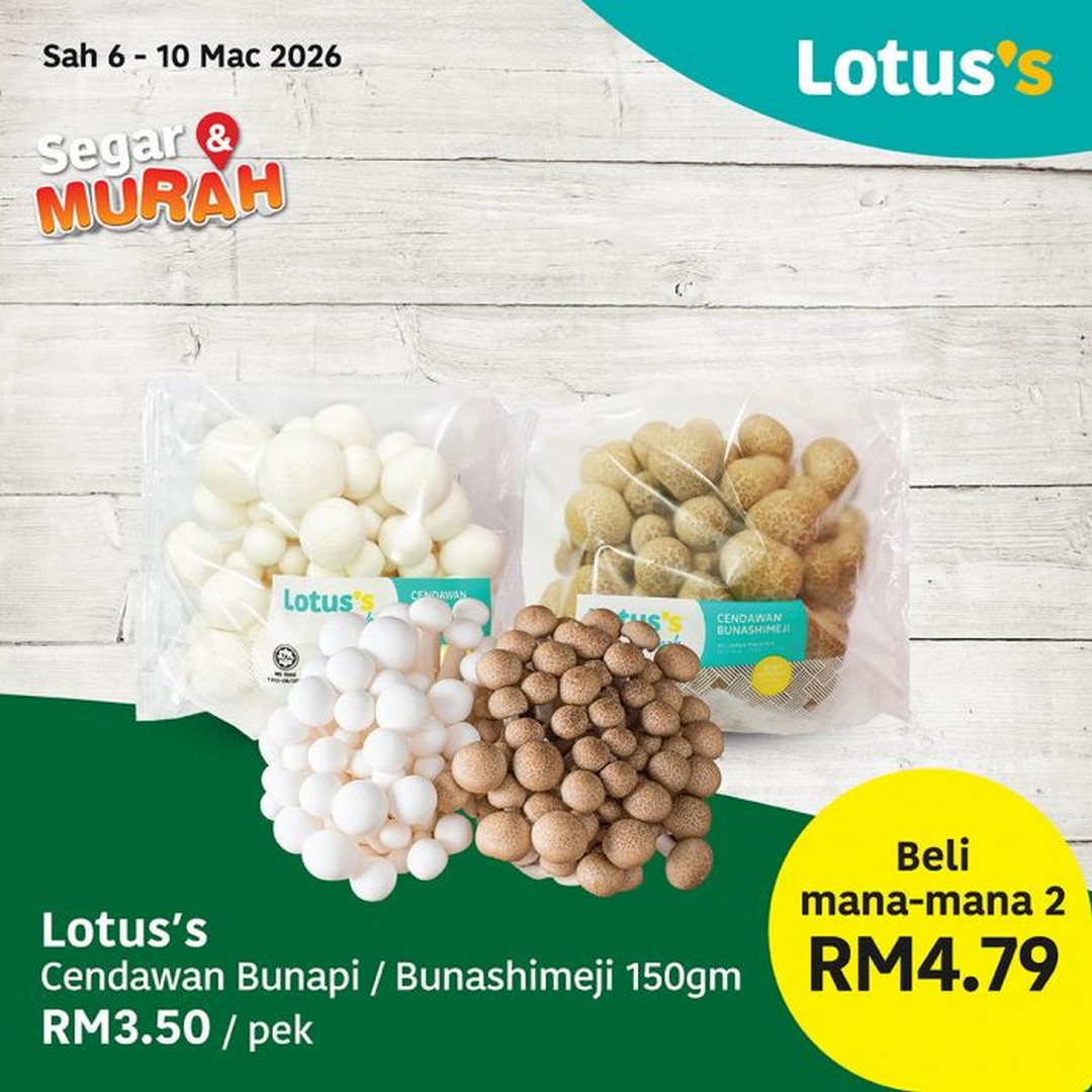 No meal is complete without a generous helping of fresh vegetables, and Lotus’s ensures their produce section is bursting with flavour and colour. Halia Tua (China) is offered at RM5.45 per kilogram, while the fiery Cili Merah is available at RM8.99 per kilogram, giving you just the right kick for spicy dishes. For mushroom lovers, Lotus’s has King Oyster Mushrooms (200gm) at RM1.99 per pack, and for something different, pick up Cendawan Bunapi or Bunashimeji (150gm) at RM3.50 per pack. You can also mix and match any two packs for only RM4.79. These deals are valid from 6th to 10th March 2026, giving you plenty of time to plan your meals and add fresh, healthy ingredients to your cart.