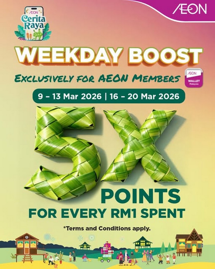 For shoppers in Malaysia preparing for the upcoming Raya celebrations, AEON Retail Malaysia has rolled out an irresistible offer that promises to make your festive shopping even more rewarding. Known for providing convenience and variety across their nationwide stores, AEON is giving their loyal members a special “Weekday Boost” that turns every ringgit spent into a much bigger reward.