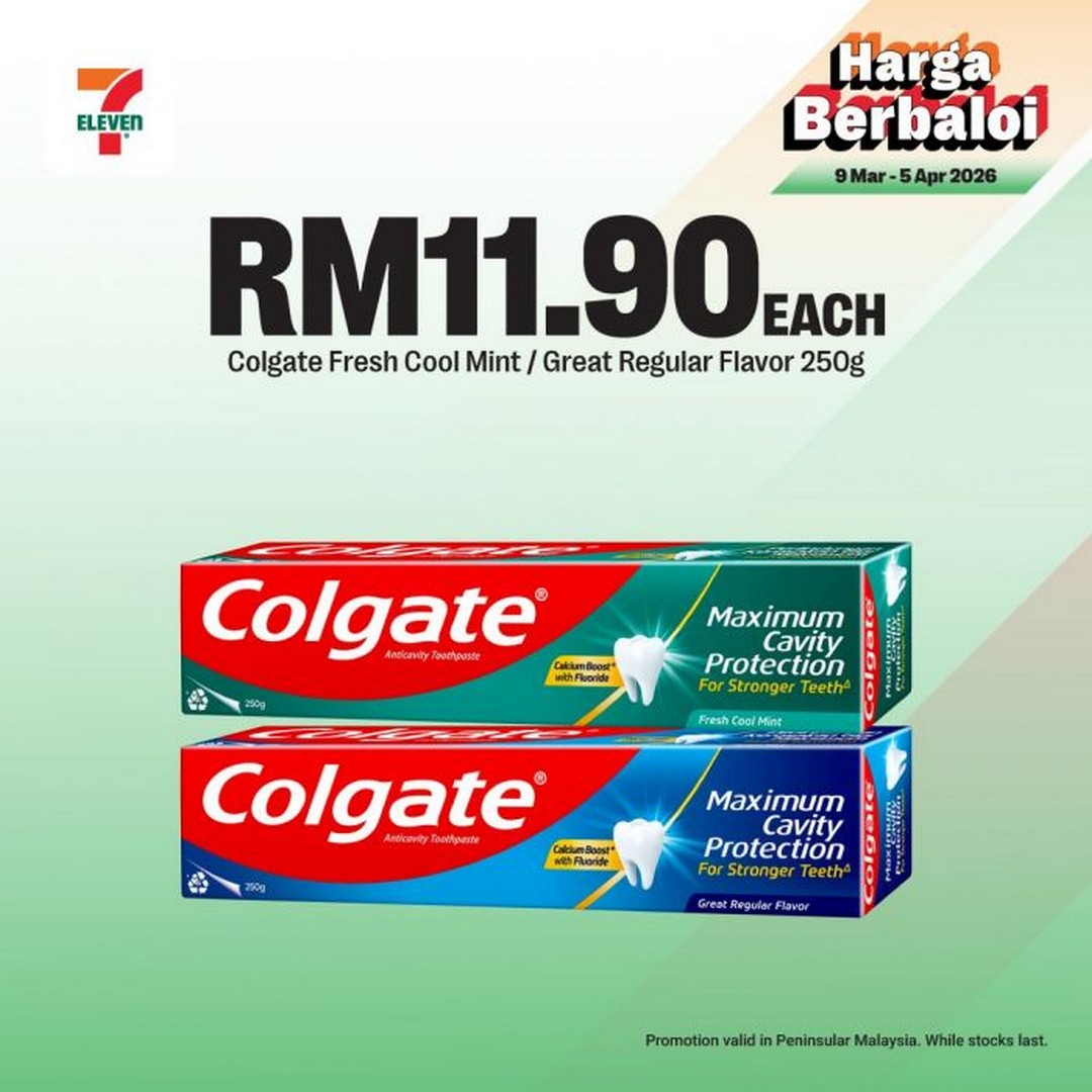 Finally, personal hygiene essentials are also part of the deal. Colgate Fresh Cool Mint or Great Regular Flavor 250g toothpaste is available at RM11.90, helping households maintain their daily oral care routine.