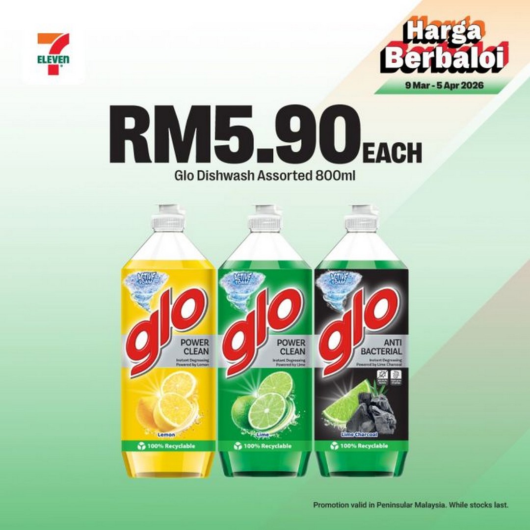 For kitchen cleaning needs, Glo Dishwash Assorted 800ml bottles are priced at RM5.90. Dishwashing liquid is an everyday necessity, particularly during Ramadan when cooking and meal preparation increase.