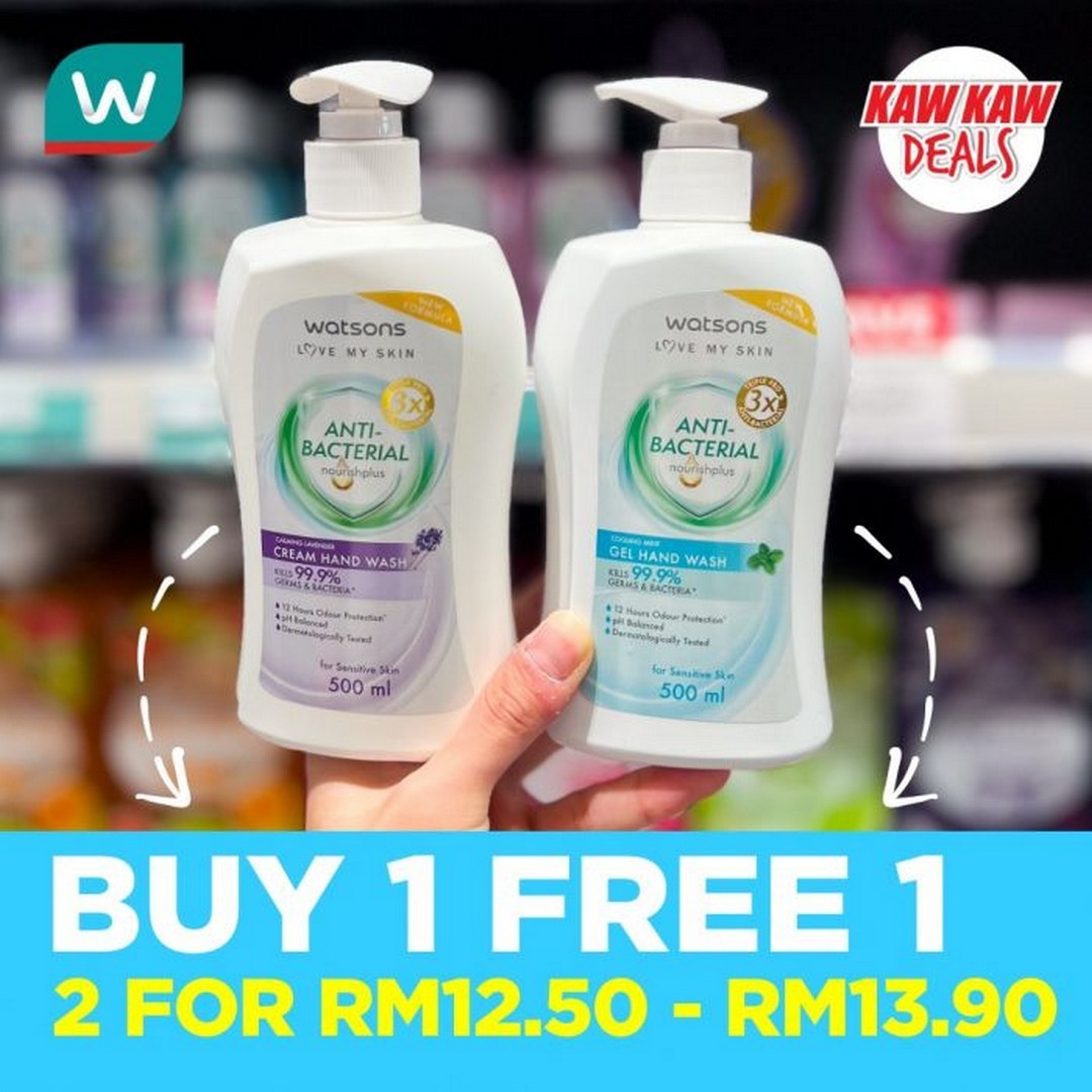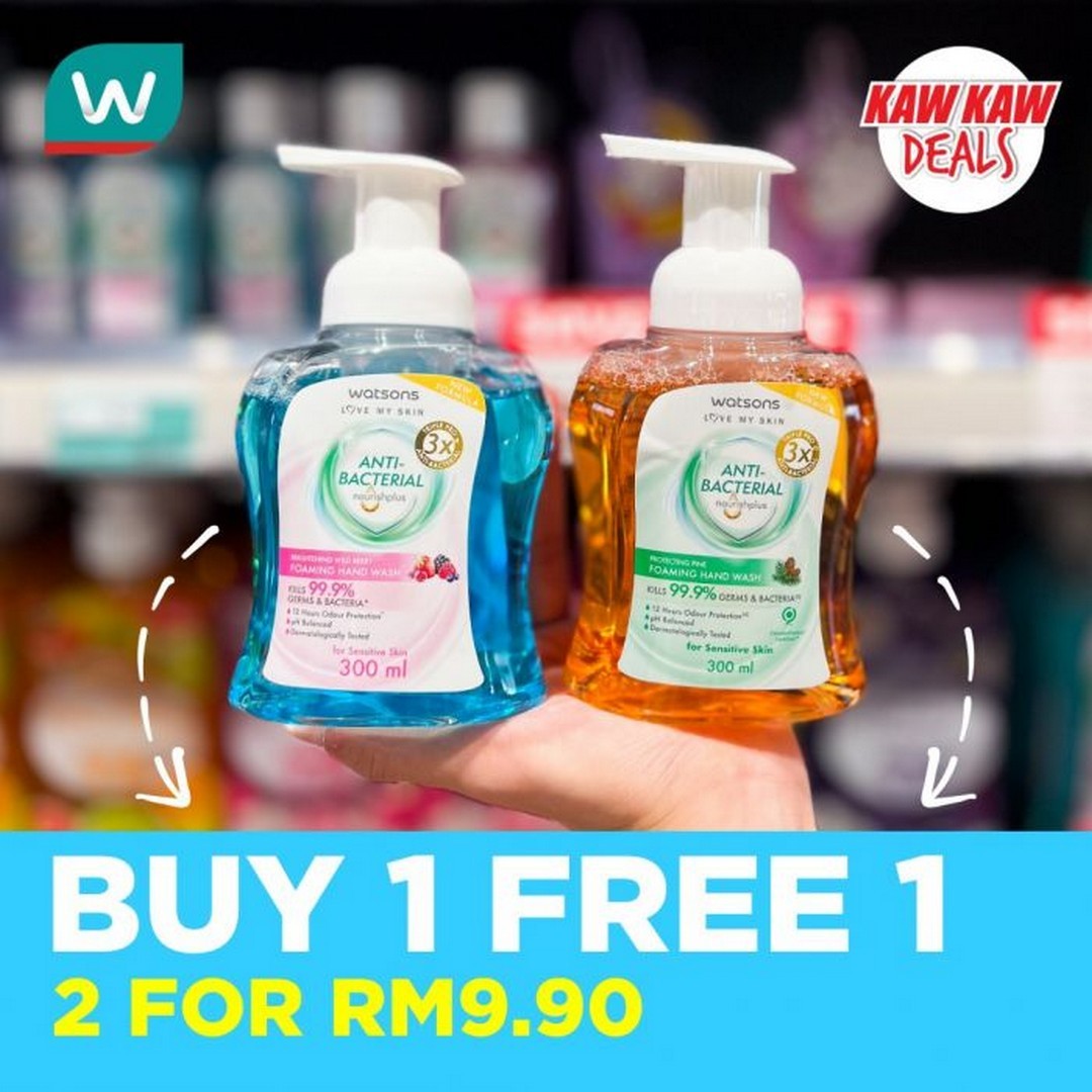 For those prioritising hygiene—especially important in today’s environment—Watsons has some excellent Buy 1 Free 1 deals as well. Their Anti-Bacterial Hand Wash, available in Cream or Gel variants (500ml), is offered at RM12.50 to RM13.90 for two bottles. Hand hygiene doesn’t need to come at a high cost, and this deal allows families to maintain a stock of safe, effective hand washes in multiple bathrooms or at work. Complementing this is the Watsons Anti-Bacterial Foaming Hand Wash (300ml), at just RM9.90 for two. It’s perfect for those who prefer a lighter, foaming formula without compromising on cleanliness.