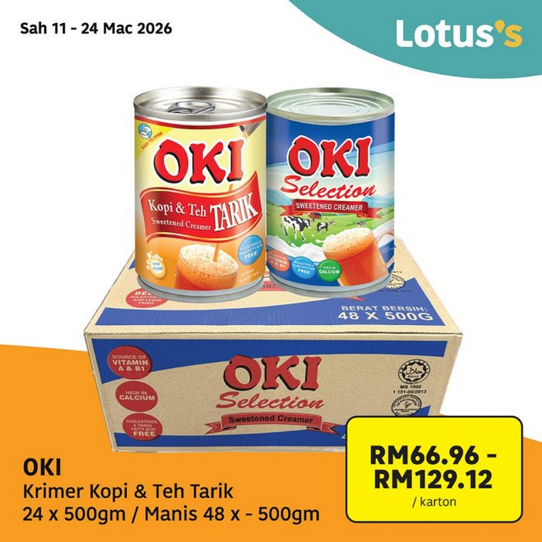 For those who enjoy coffee or teh tarik, Lotus’s is also offering OKI Krimer Kopi & Teh Tarik, with carton prices ranging between RM66.96 and RM129.12 depending on the variant. Coffee creamer is an essential pantry item in many Malaysian homes, particularly during the early morning sahur or late-night conversations after moreh.