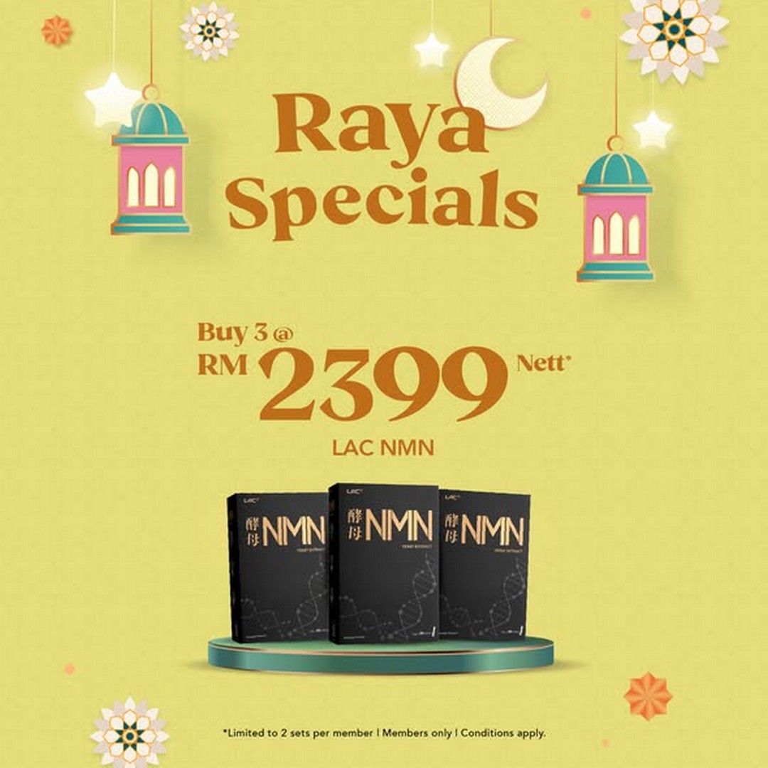 For those looking to strengthen their immune system ahead of the celebrations, the LAC Stem-C promotion may also be appealing. Customers can purchase three bottles for RM1,999 nett as part of the Raya special deal.