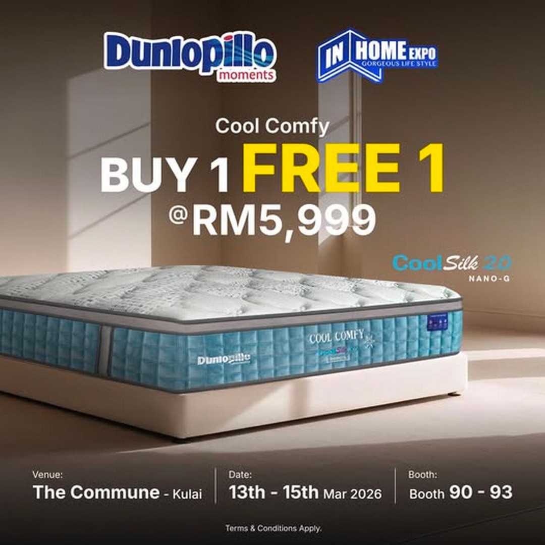 From 13 to 15 March 2026, shoppers visiting The Commune Kulai can discover an exclusive deal by Dunlopillo Malaysia, one of the most recognised names in premium bedding. During this limited three-day exhibition, visitors will have the opportunity to enjoy an impressive Buy 1 Free 1 promotion on the Dunlopillo CoolSilk 2.0 Nano-G Cool Comfy mattress priced at RM5,999, along with complimentary pillows. The offer is available exclusively at the event’s Booth 90 to 93, making it a special deal that cannot be found through typical retail channels.
