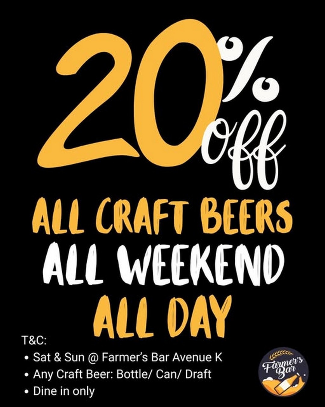 What makes this promotion particularly enticing is its simplicity. There’s no complicated conditions to meet—just dine-in and enjoy 20% off all craft beers. For those who love a good deal, this straightforward offer removes the stress often associated with promotional campaigns and allows diners to focus entirely on enjoying their meal and drinks. It also makes Farmer’s Bar an appealing option for groups, as everyone can take advantage of the discount regardless of the type of craft beer they prefer.