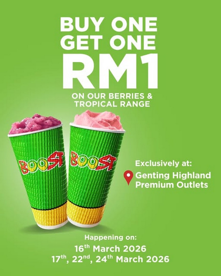 The popular smoothie brand has officially announced the grand reopening of its outlet at Genting Highlands Premium Outlets, and they are celebrating the occasion with a promotion that is hard to ignore. For a limited number of dates in March 2026, customers can enjoy a Buy 1, Get 1 for just RM1 deal on selected drinks from their Berries and Tropical range.