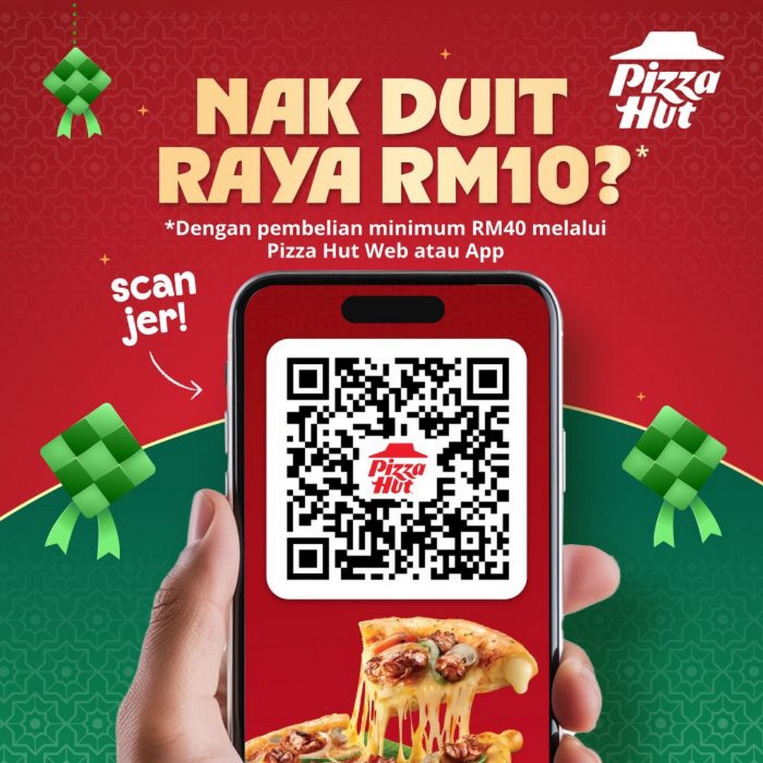 For those who prefer the convenience of ordering from home, Pizza Hut is offering a RM10 Duit Raya reward for orders made through their official website or mobile app. The process is simple: all you need to do is spend a minimum of RM40 on any menu items. Once your order qualifies, the RM10 reward will be instantly applied to your purchase.