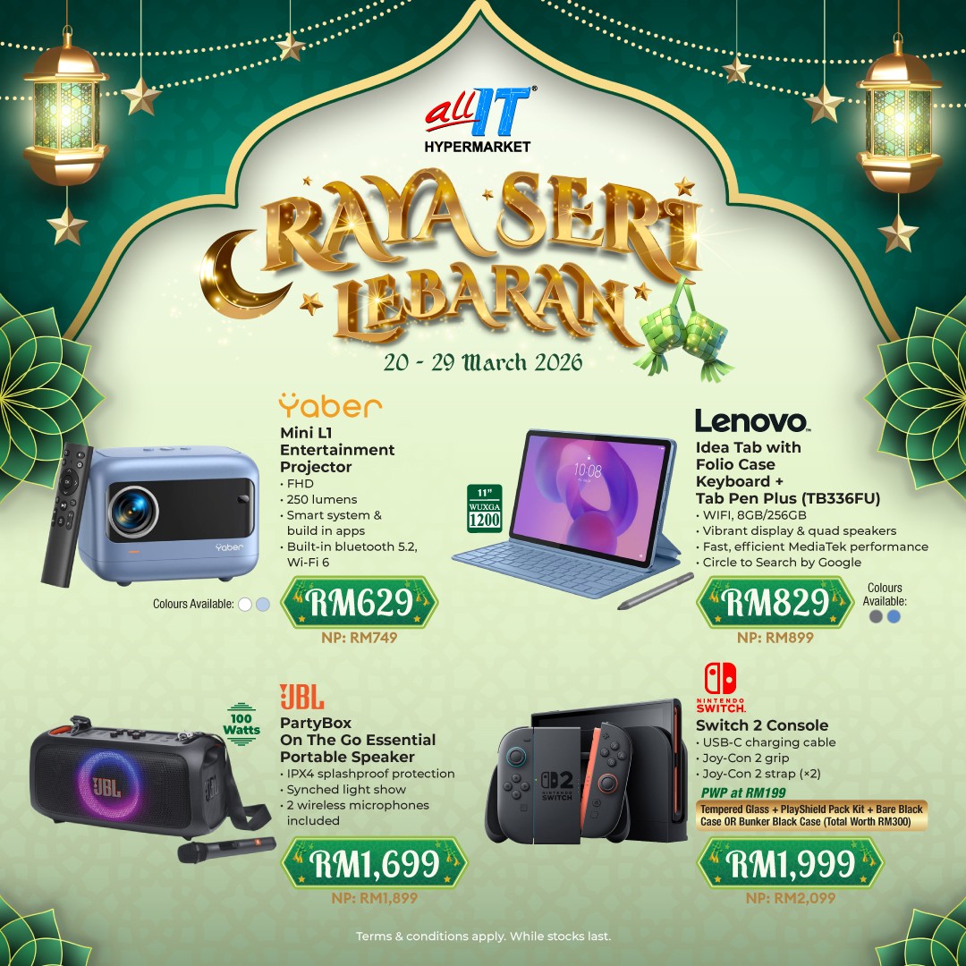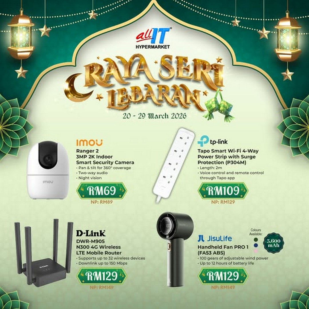 Raya is just around the corner, and for those looking to upgrade their gadgets, tech essentials, or home appliances, ALL IT Hypermarket is making it irresistible this season. From 20 to 29 March 2026, shoppers can enjoy discounts of up to 36% across a wide range of products, making it the ideal time to invest in new tech for their Raya celebrations. Whether it’s a smart home device, a brand-new laptop, or kitchen appliances to prepare festive meals, ALL IT Hypermarket has something for everyone.