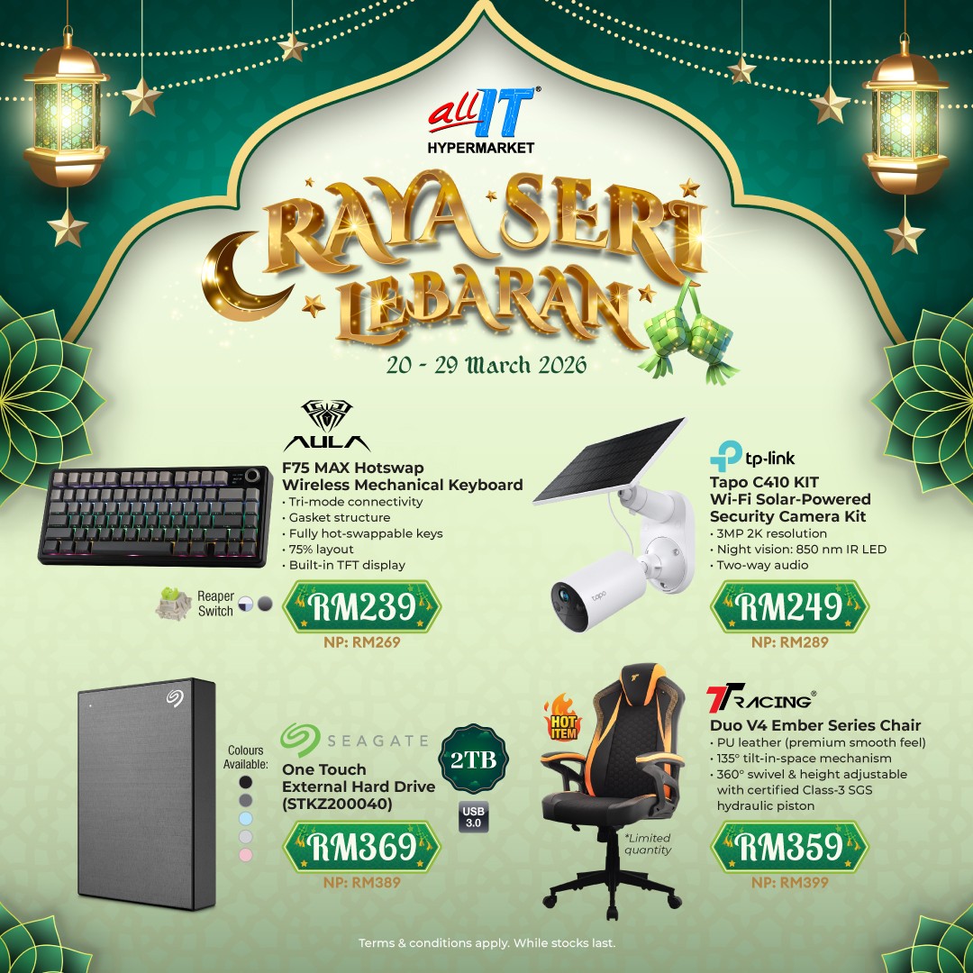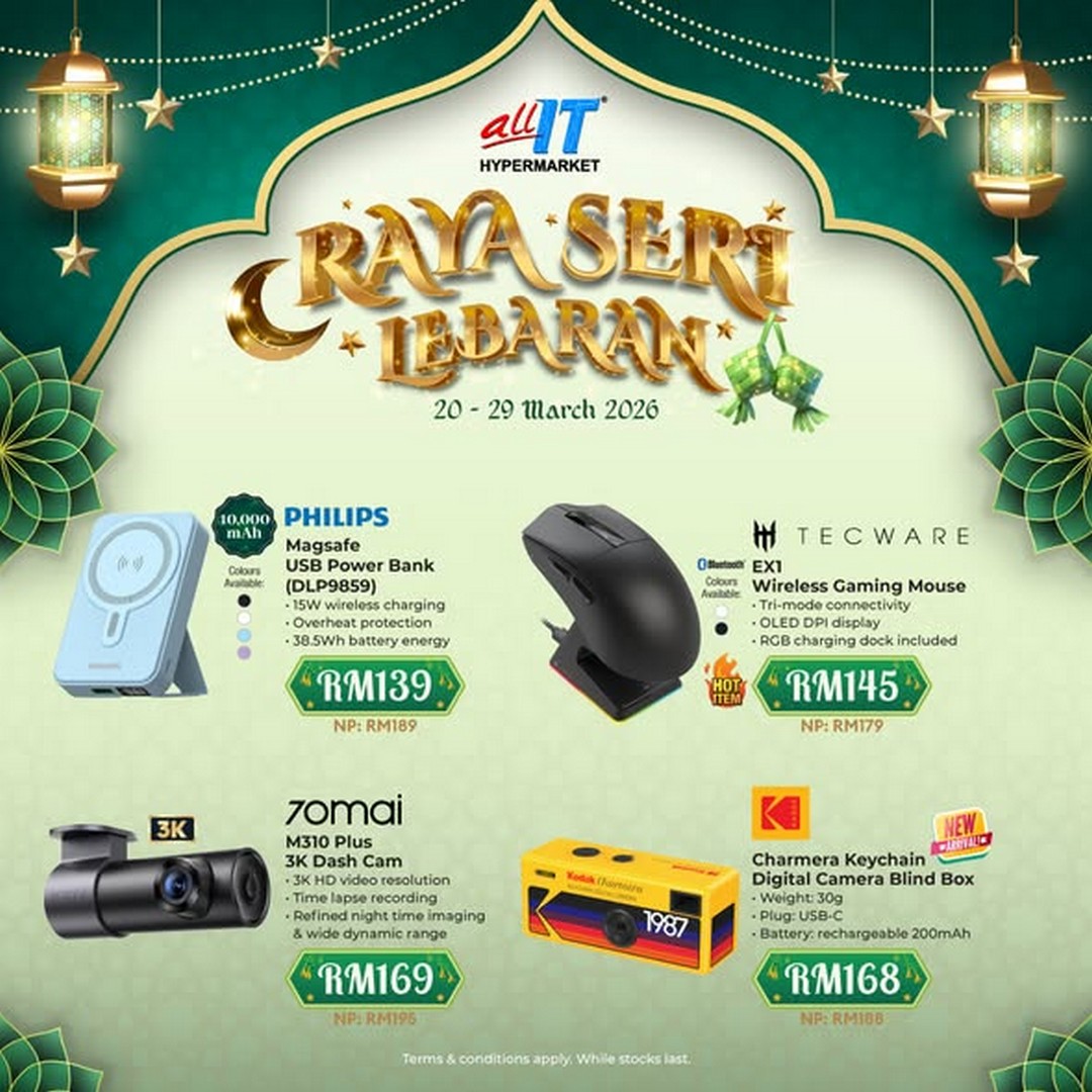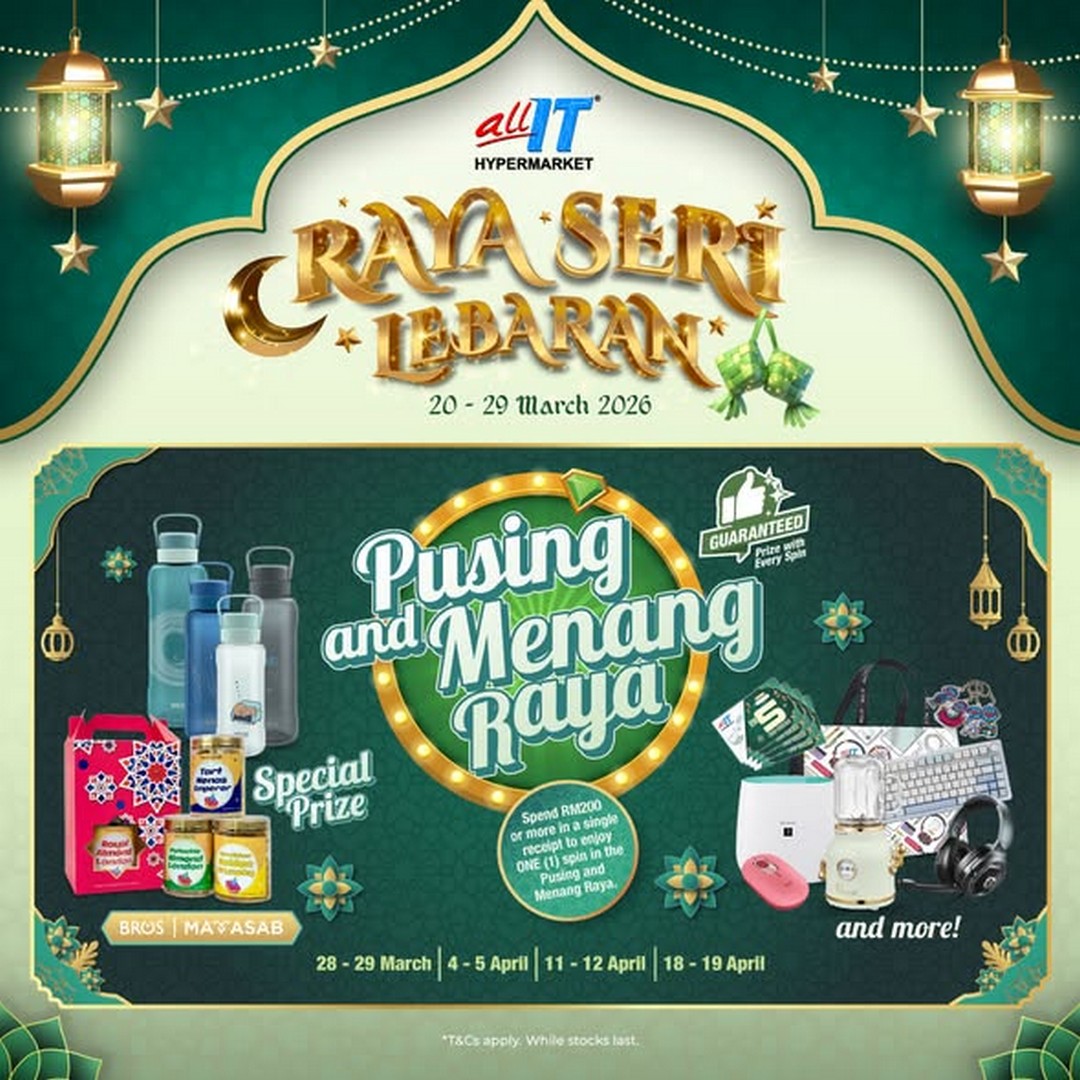 In summary, this Raya, ALL IT Hypermarket combines practical shopping with festive fun. Discounts of up to 36% on essential tech items provide excellent value, the “Pusing & Menang Raya” event adds excitement, and exclusive member rebates ensure loyal customers get extra perks. With convenient access, clear schedules, and guaranteed prizes, it’s an event worth marking in the calendar. Whether shopping for personal upgrades, home improvements, or gifts for loved ones, this promotion ensures that everyone leaves with more than just products—they leave with the joy of a festive shopping experience.