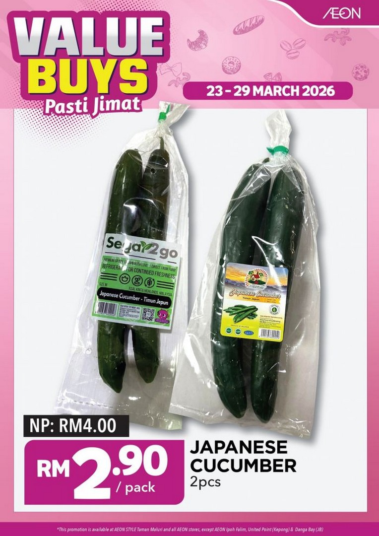 The second wave of offers, running from 23 to 29 March, includes frozen Sutchi Fish Fillet 800g at only RM9.90 each – an excellent choice for a protein-packed meal ready in minutes. Japanese Cucumbers, sold in packs of two for RM2.90, are perfect for refreshing salads or quick pickles. For families looking to stock up on everyday essentials, AEON has also included products that are available throughout the entire campaign period, ensuring a wide selection of items to choose from.