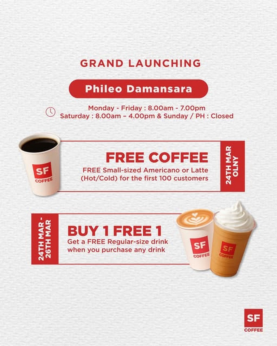 Taking place from 24 to 26 March 2026, this launch event is more than just a simple store opening. It is an invitation for coffee enthusiasts, office workers, and anyone nearby to enjoy a few days of irresistible promotions. Whether it is a quick caffeine fix before work or a relaxed catch-up session with friends, this is one event that offers both value and experience.