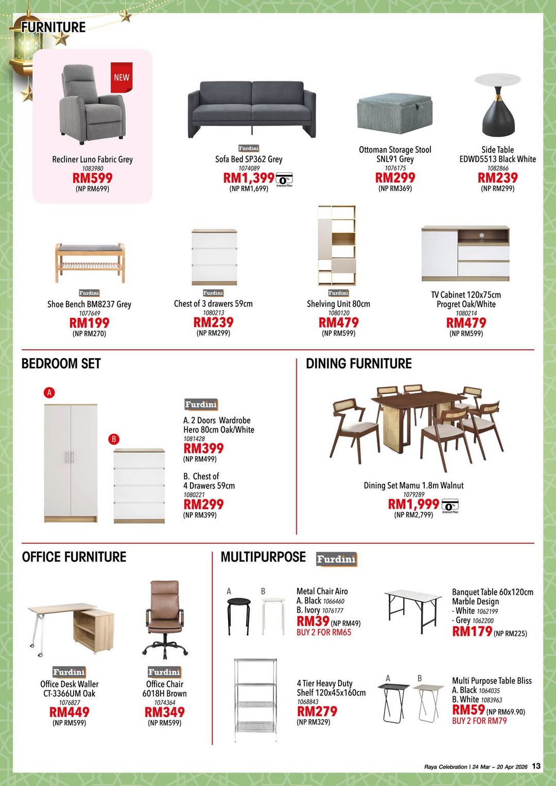For those looking to enhance their dining space, the Dining Set Mamu 1.8m walnut design at RM1,999 (from RM2,799) stands out as a worthwhile investment. A comfortable and stylish dining area can truly elevate the experience of hosting family and friends during Raya.