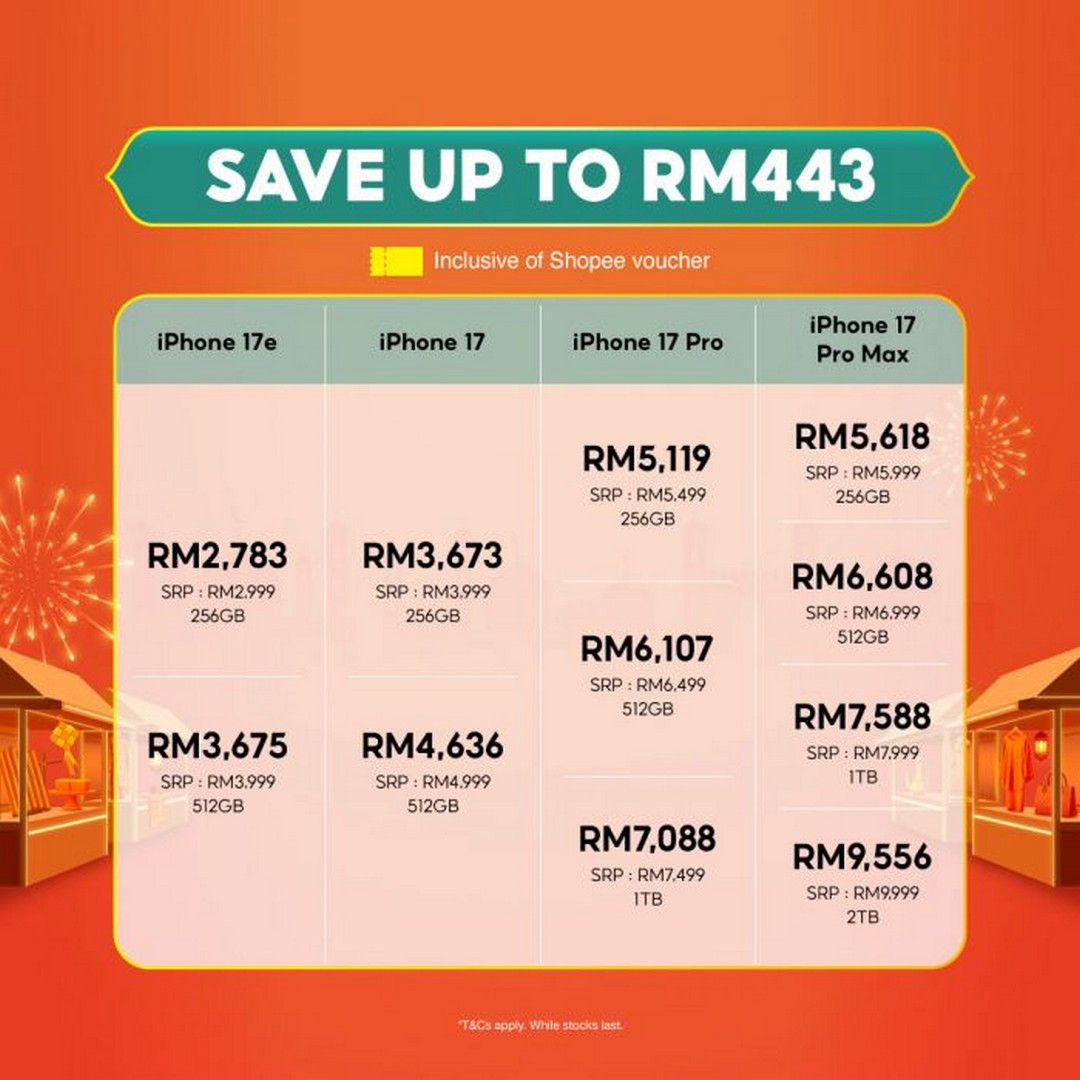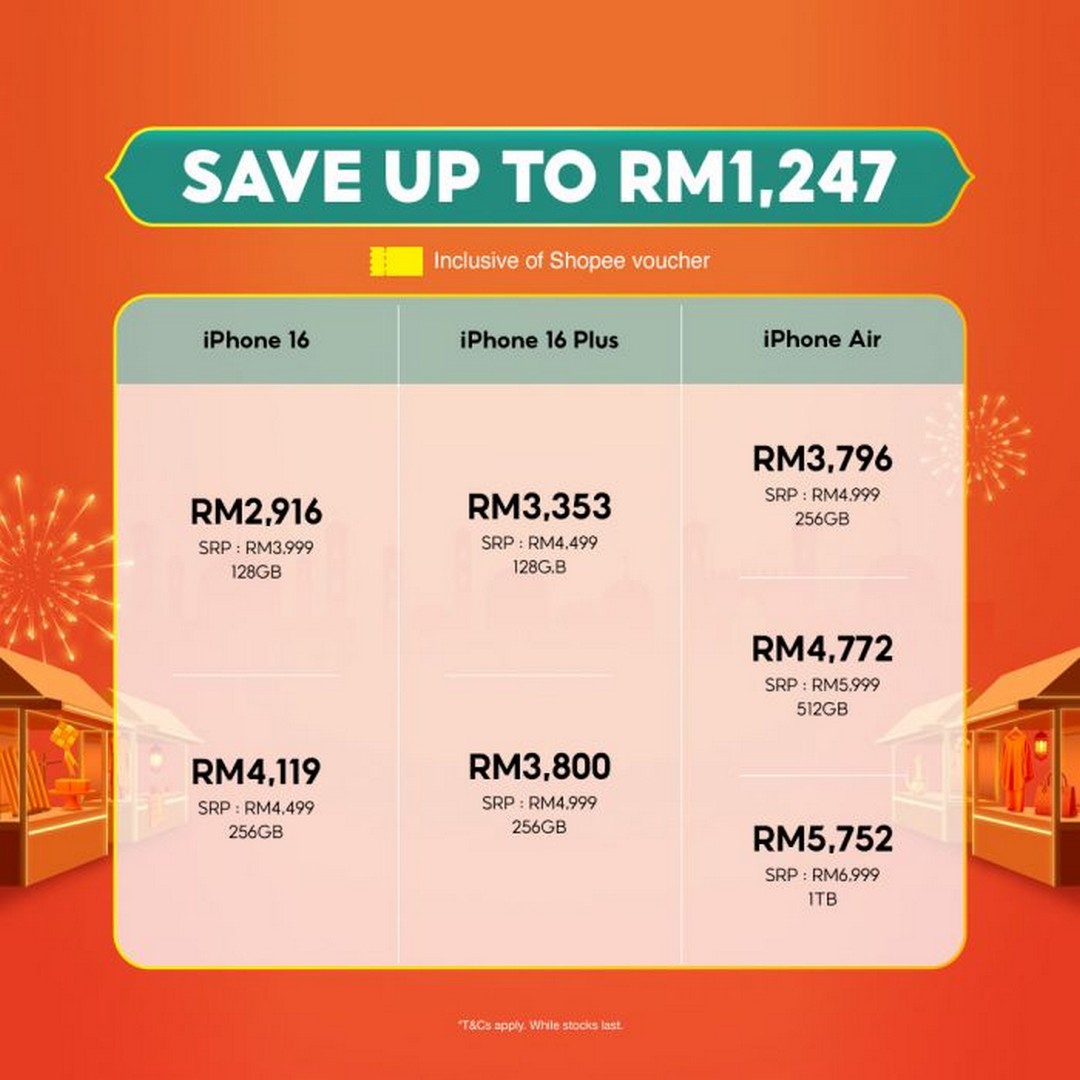 Even newer models such as the iPhone 16 (128GB) are part of the promotion, priced at RM2,916 instead of RM3,999. For those who prefer the top-tier experience, the iPhone 17 Pro Max (256GB) is also included at RM5,618, offering savings that are hard to ignore for a device in this category.