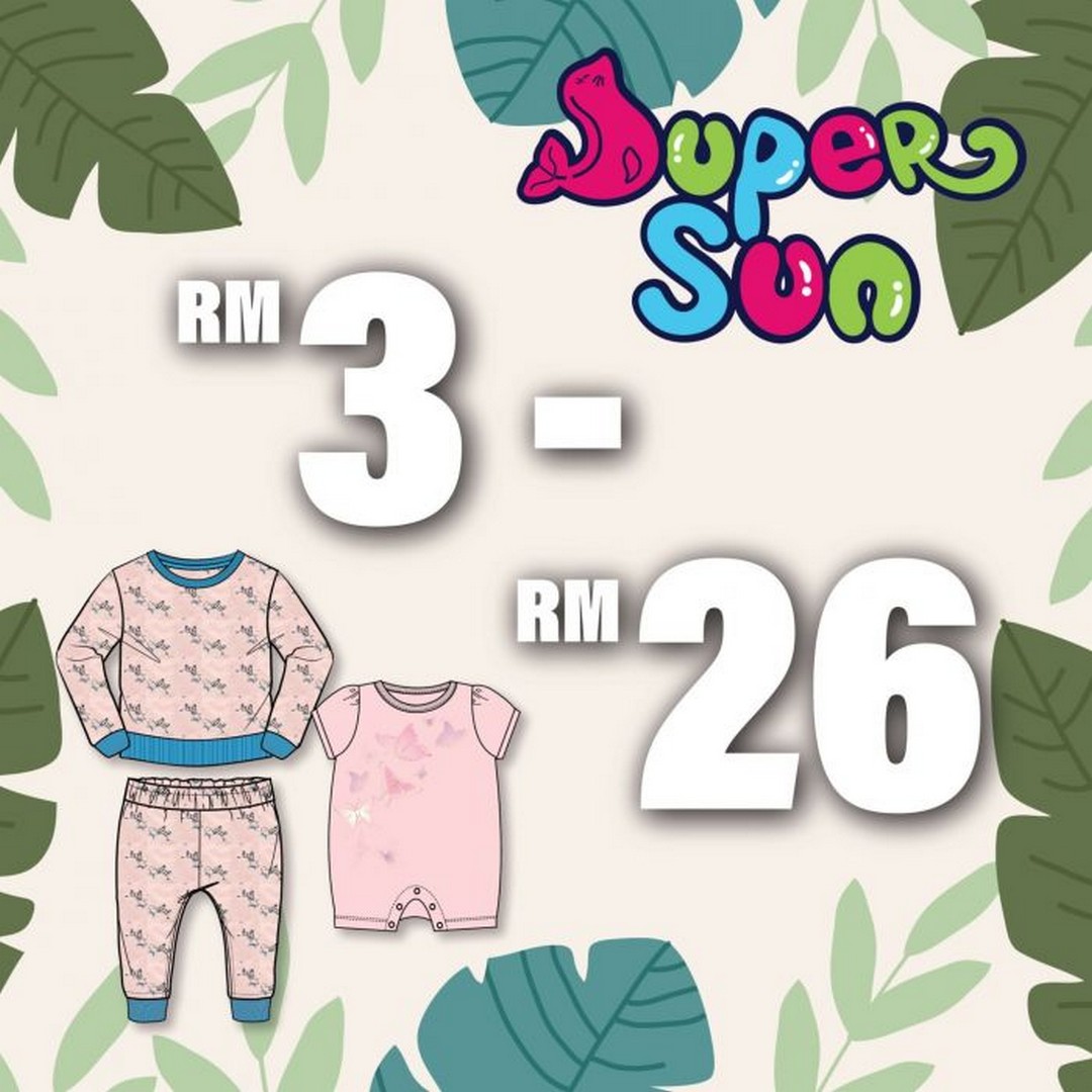 When it comes to baby clothing, the deals available here are genuinely hard to ignore. Parents can browse through a wide selection of outfits suitable for daily wear, outings, and even sleepwear. The Super Sun Apparel range offers incredibly low prices starting from RM3 up to RM26, making it ideal for stocking up on basics without stretching the budget.
