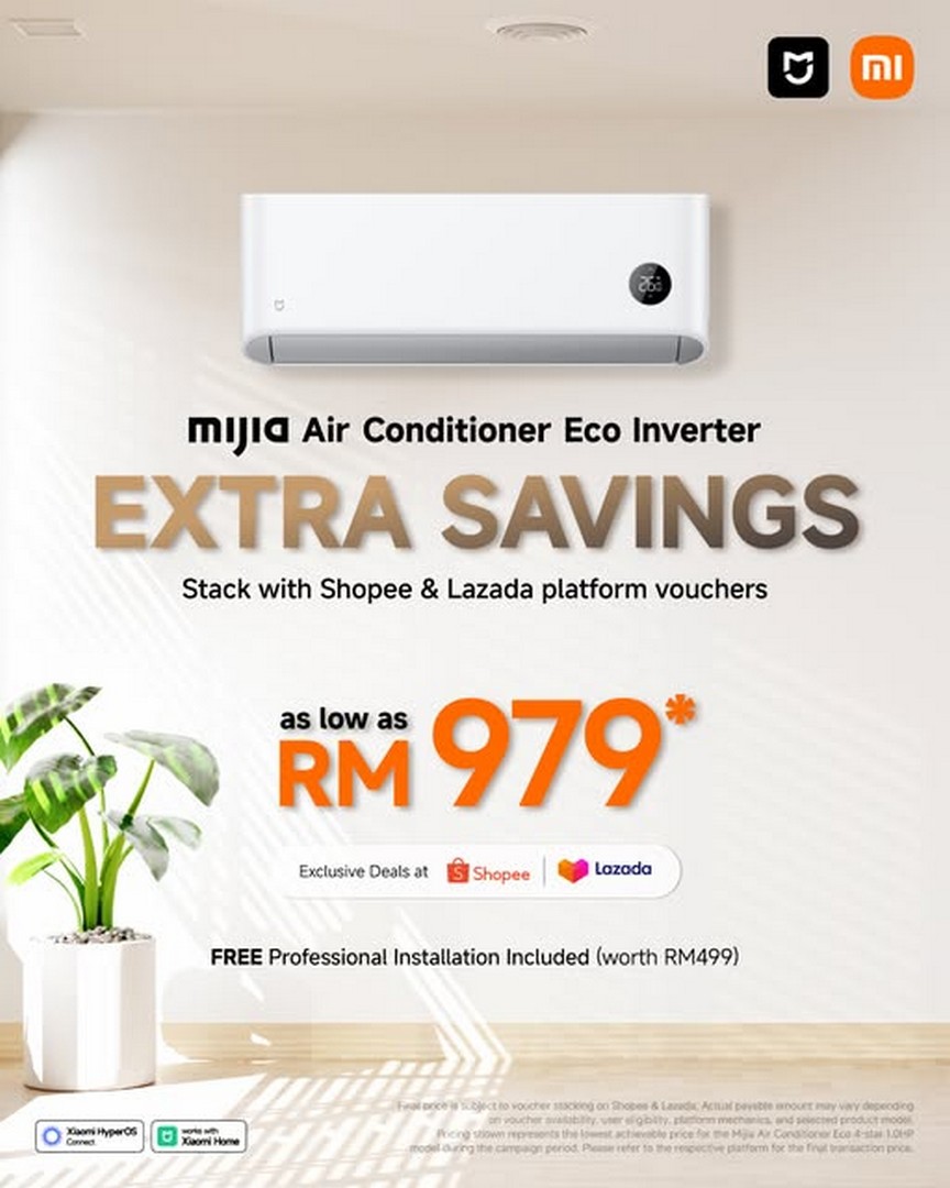 The highlight of this promotion is the Mijia Air Conditioner Eco Inverter, a model designed with energy efficiency and everyday comfort in mind. What makes this deal especially attractive is the price point — shoppers can now get it from as low as RM979, provided they stack platform vouchers on popular online marketplaces such as Shopee and Lazada. For many households, this price alone is already compelling, but Xiaomi takes it one step further by including free professional delivery and installation worth RM499, making the overall value even more worthwhile.