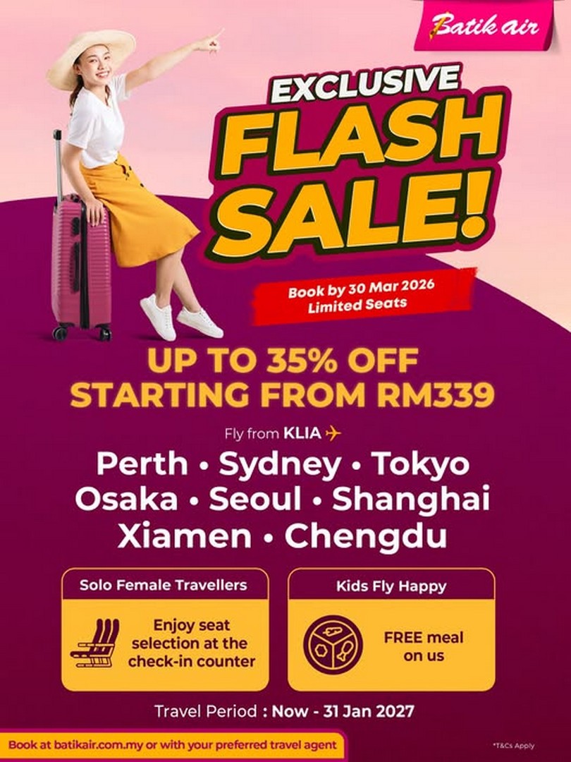 In conclusion, if you’ve been considering travel but hesitated due to cost, this flash sale provides the perfect solution. With fares starting from RM339, complimentary meals for children, seat selection options for female solo travellers, and the overall comfort and service of Batik Air Malaysia, this promotion ticks all the boxes for a stress-free and enjoyable journey. The key takeaway is simple: book now before the seats are gone, and enjoy an affordable, comfortable, and well-planned travel experience.