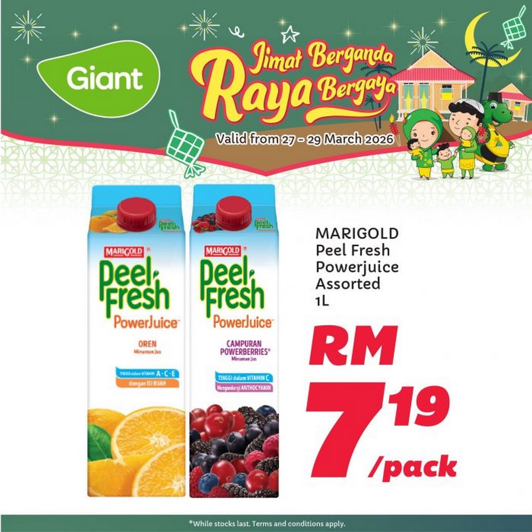 Participating in the “Jimat Berganda Raya Bergaya” promotion is straightforward. Customers simply need to visit any participating Giant outlet between 27 and 29 March 2026 and browse the promotional aisles. Discounts on fresh, frozen, and pantry items will be applied at the checkout counter automatically, making it hassle-free for busy shoppers.