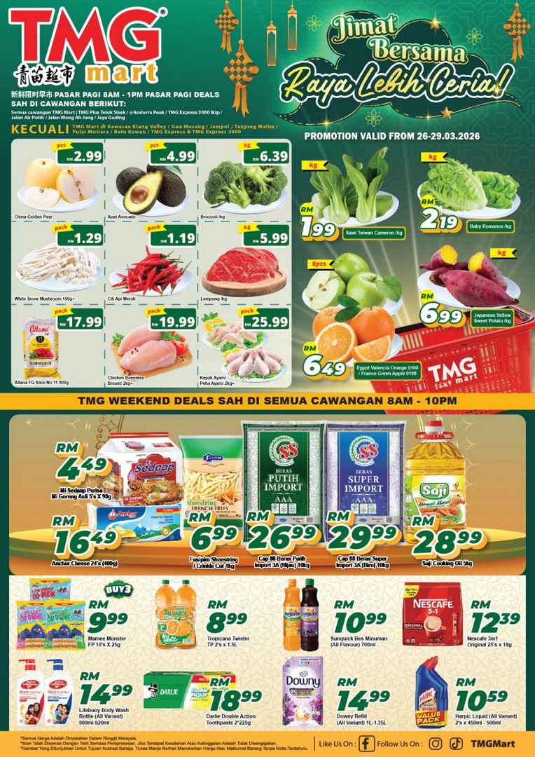 - Venue: All TMG Mart branches for Weekend Deals; Pasar Pagi Deals at selected TMG Mart / TMG Plus / TMG Express outlets (excluding Klang Valley, Gua Musang, Jempol, Tanjung Malim, Pulai Mutiara, Batu Kawan, TMG Express & TMG Express 3000 Stores)