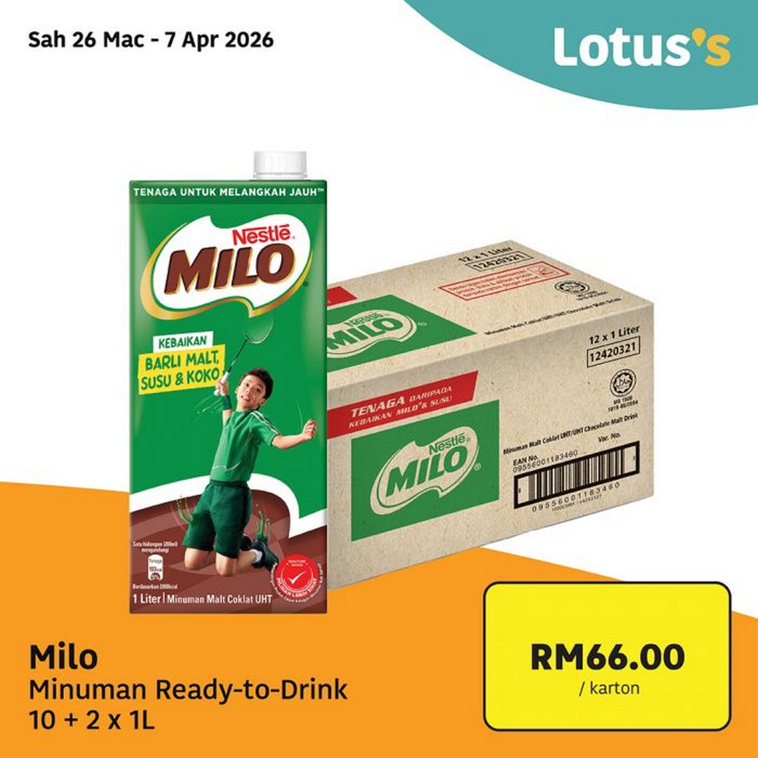 - Milo UHT 10+2x1L – RM66.00 per carton. Keep everyone energised and ready for the festive celebrations.