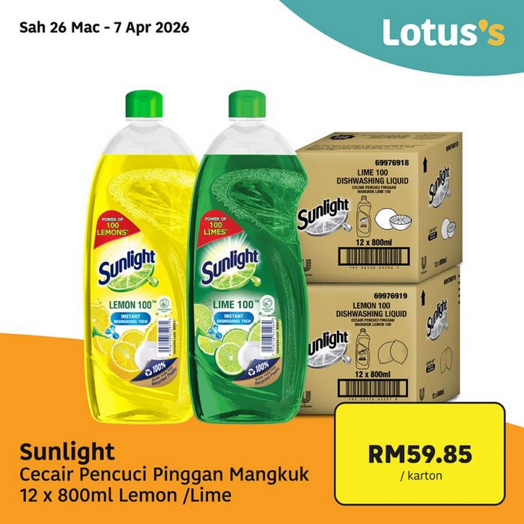 - Sunlight Dishwashing Liquid 12x800ml – RM59.85 per carton. Cleaning up after Raya feasts is much easier when bought in bulk.
