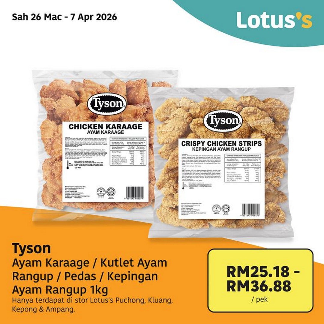 - Venue: Lotus’s nationwide outlets (Tyson Chicken products available at Puchong, Kluang, Kepong, and Ampang branches only)