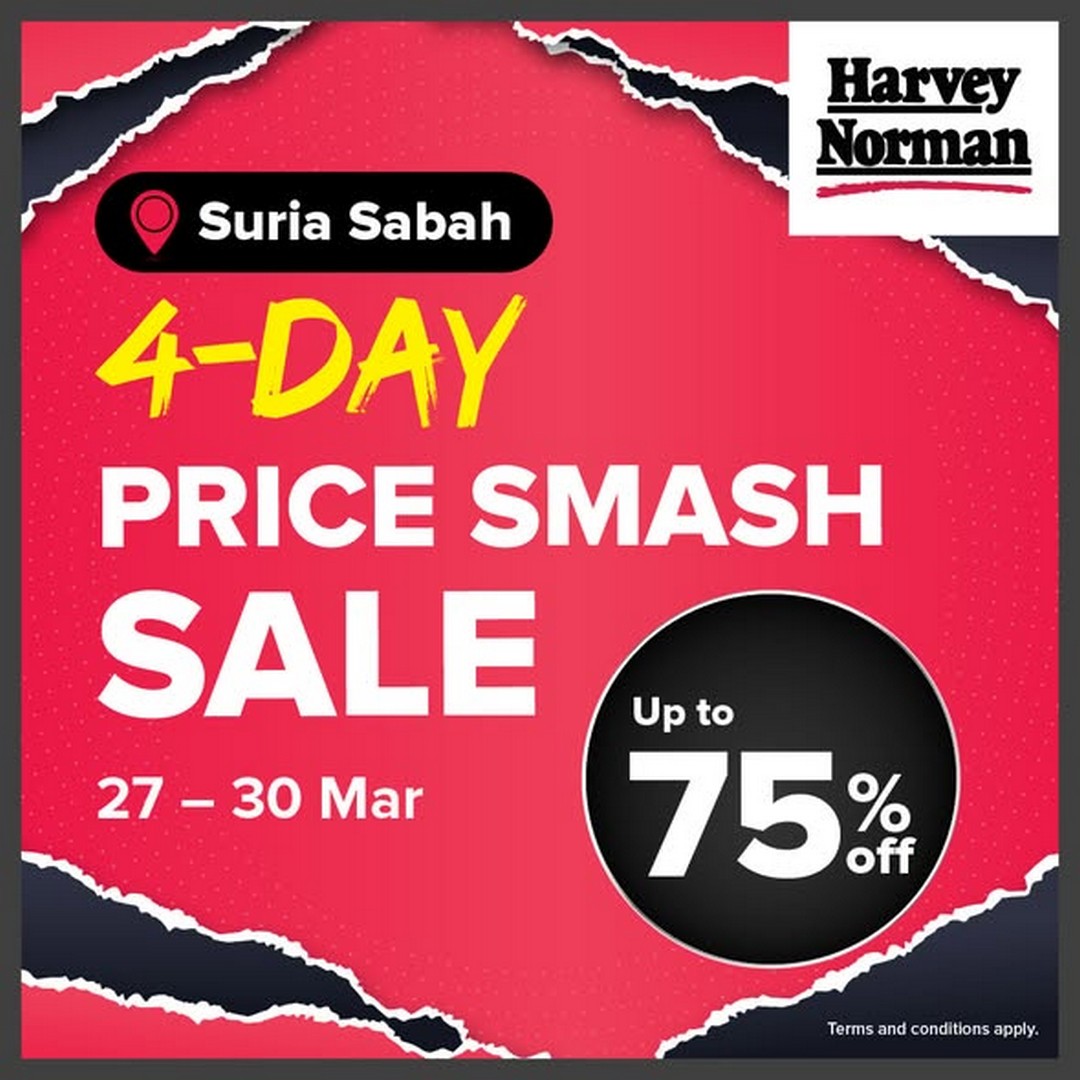 Bargain hunters and tech enthusiasts in Sabah, here’s a deal that simply cannot be ignored. From 27 to 30 March 2026, Harvey Norman Malaysia is hosting a spectacular 4-Day Price Smash Sale, where shoppers can enjoy discounts of up to 75% across a wide range of products. Whether someone is looking to upgrade their home appliances, find the latest gadgets, or redecorate their living spaces with stylish furniture, this sale promises jaw-dropping bargains that are well worth planning a trip for.