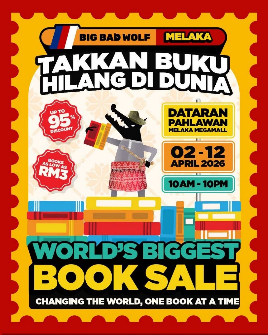 Whether you’re a local resident or visiting Melaka, this is your chance to immerse yourself in a world of books, bargains, and excitement. Don’t miss the Big Bad Wolf Books warehouse sale, where stories come to life and unbeatable deals await. Mark your calendars, gather your friends and family, and get ready to enjoy a celebration of reading like no other.