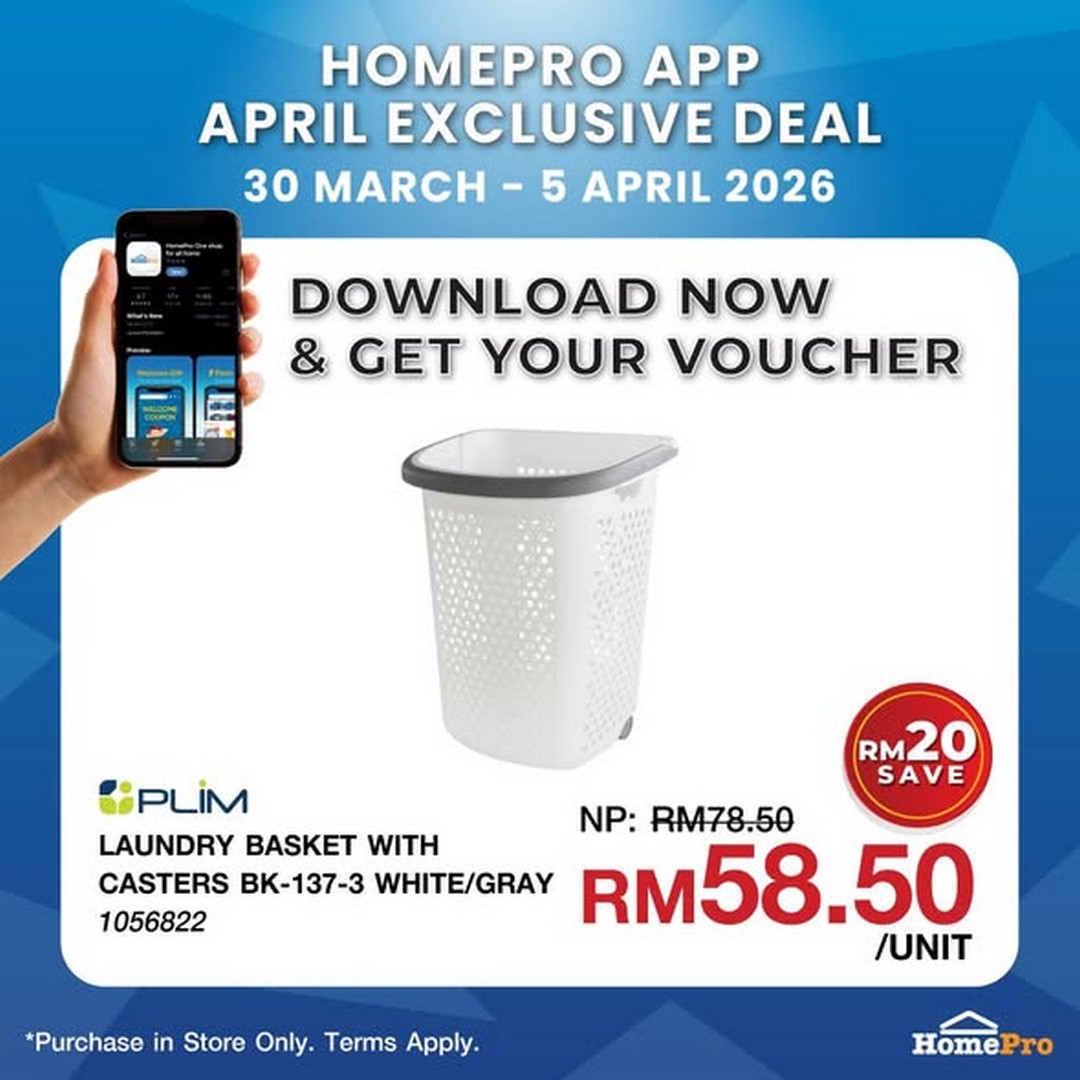Now, here is where the deal becomes even more appealing. By downloading and using the HomePro App, customers can enjoy a special discounted price. The PLIM Laundry Basket with Casters is reduced by RM20, bringing the price down to just RM58.50. For a household essential that can be used daily, this is a modest investment that delivers long-term convenience.