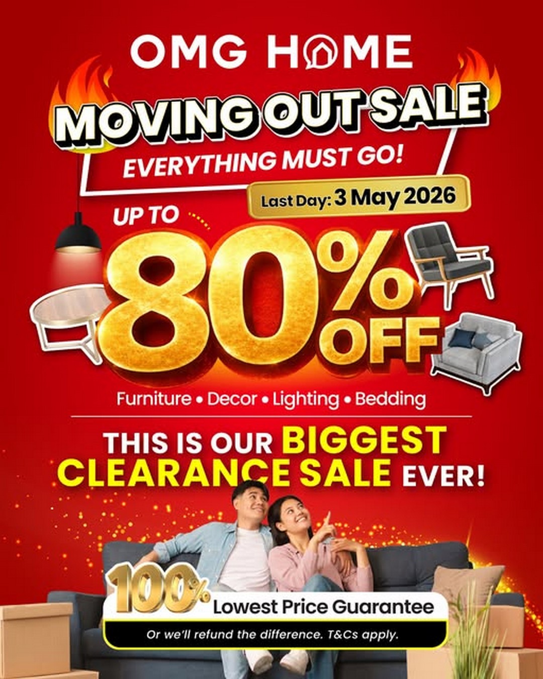 In conclusion, OMG HOME’s moving out clearance sale is a golden opportunity for anyone looking to furnish or upgrade their home in 2026. With discounts reaching up to 80%, a wide selection of high-quality furniture, a 100% Lowest Price Guarantee, and no restocks once items are sold out, this is truly a sale that cannot be missed. Shoppers should plan to visit before 3 May 2026, arrive early to get the best deals, and enjoy the thrill of a clearance event that promises both style and savings.