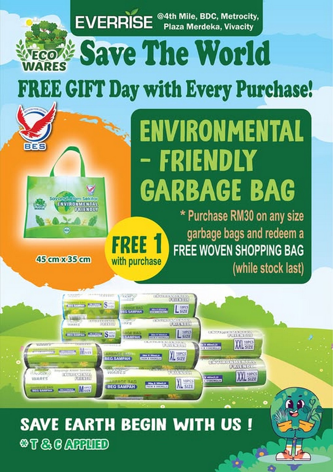 Starting from 30 March 2026 onwards, shoppers at selected Everrise outlets in Kuching can enjoy a simple but meaningful deal: spend RM30 on BES garbage bags and receive a free woven shopping bag. It’s a promotion that blends utility, value, and eco-consciousness all in one.