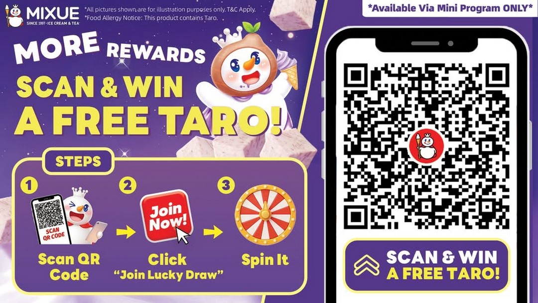 For those who are already fans of MIXUE’s affordable drinks and soft-serve ice cream, this campaign adds an extra layer of enjoyment. For those who have yet to try their menu, this might be the perfect excuse to give it a go—especially when there is a possibility of winning a free taro drink just by scanning and spinning.