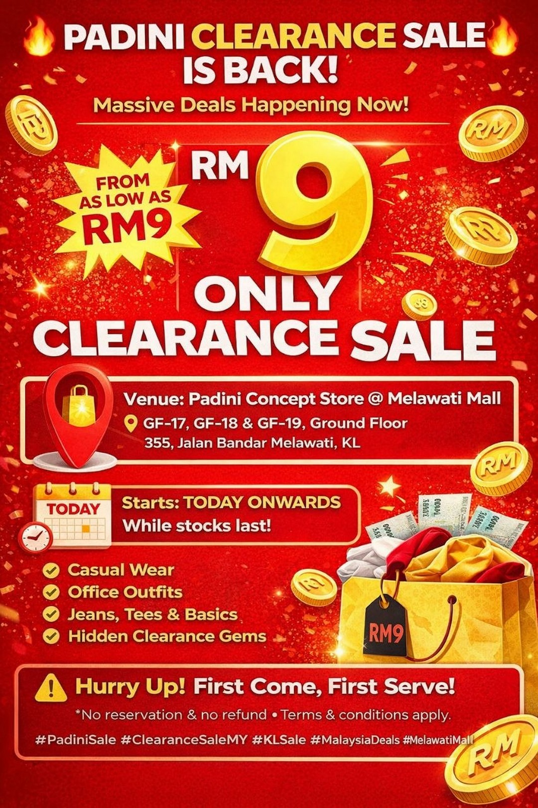 In conclusion, whether someone is a dedicated bargain hunter, a fashion enthusiast, or simply looking to refresh their wardrobe affordably, the Padini Clearance Sale at Melawati Mall is not to be missed. With unbeatable prices, a wide range of options, and the excitement of uncovering hidden clearance treasures, it’s an event that promises both fun and value. Make sure to head over early, bring your shopping energy, and enjoy the thrill of scoring incredible deals.
