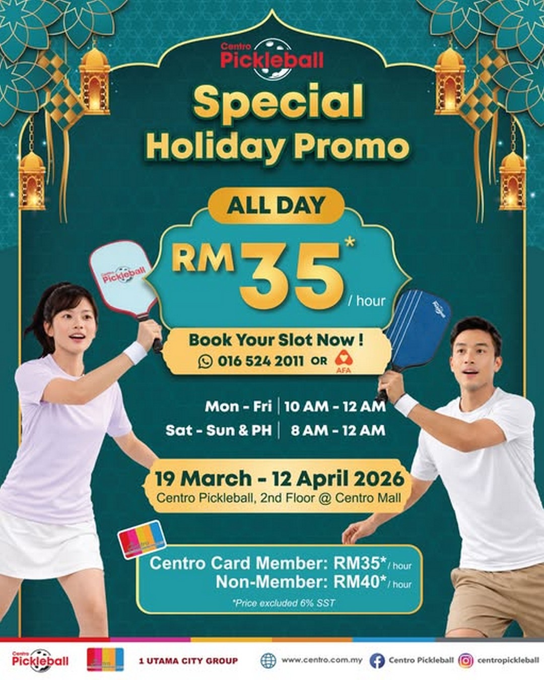 So, grab your friends, family, or colleagues and head to Centro Pickleball. Book a session, enjoy the sport, and make this holiday season one to remember. Remember, the promotion runs from 19 March to 12 April 2026, so there’s plenty of time to plan a visit, but it’s always best to secure your spot early to avoid disappointment.