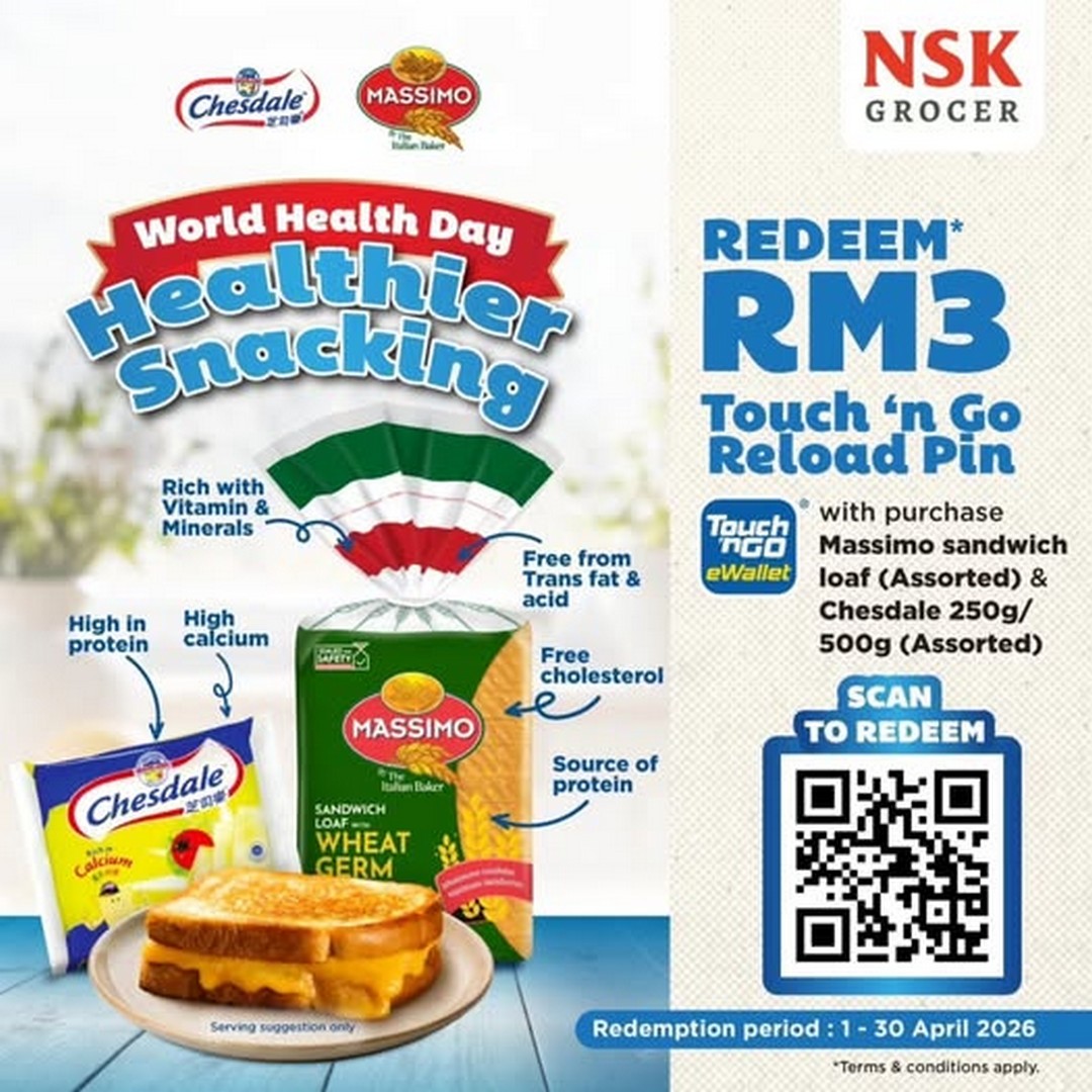 What makes this promotion particularly appealing is the instant reward component. Upon purchasing the Massimo Sandwich Loaf and Chesdale cheese combination, shoppers can redeem a RM3 Touch ‘n Go Reload PIN right away. There’s no waiting, no lengthy redemption process — just a simple, instant reward that adds extra value to your purchase. This makes it more than just a regular supermarket deal; it’s an incentive to start healthier eating habits today while being rewarded immediately for making the smarter choice.