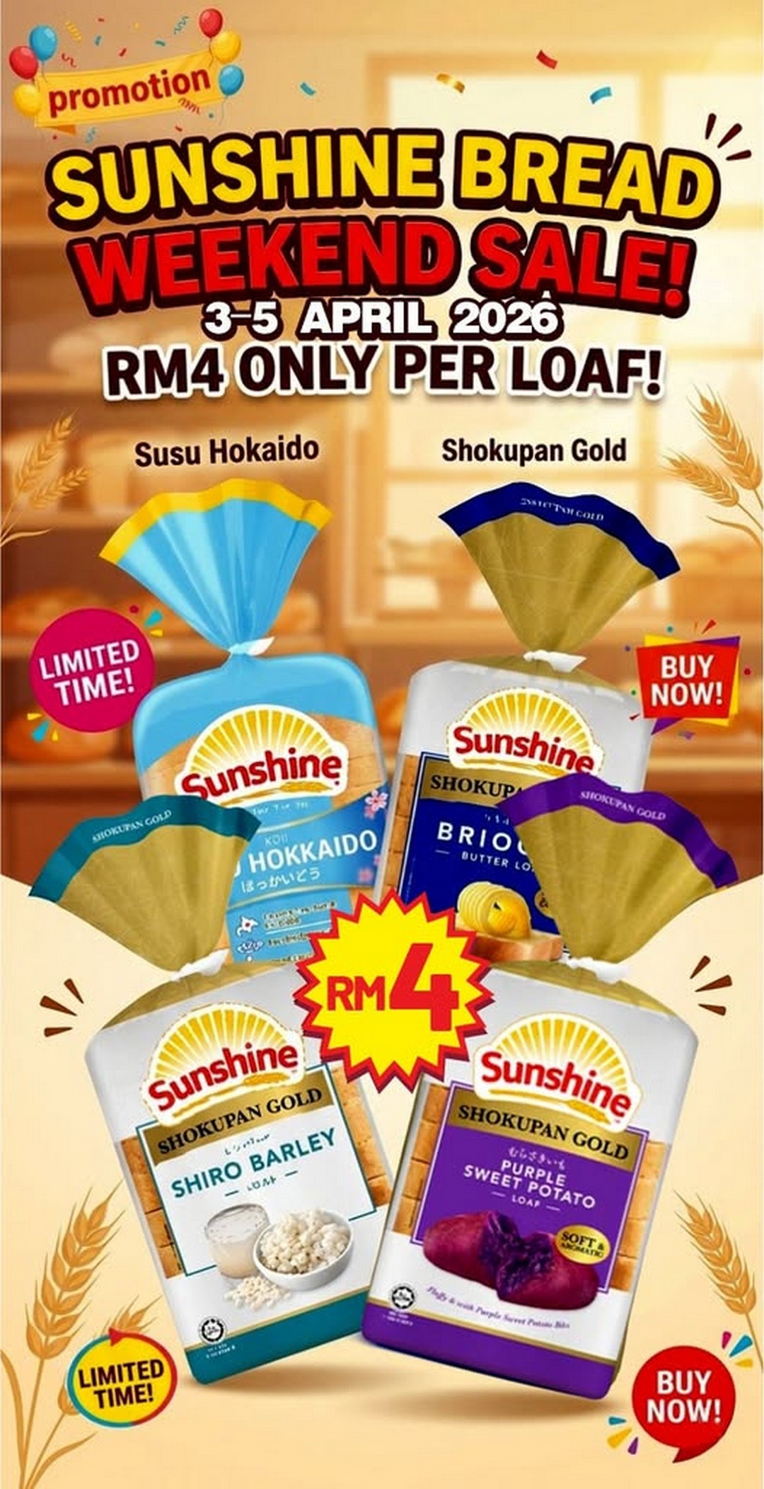 Running from 3 to 5 April 2026, this short but worthwhile promotion offers Sunshine Bread at an incredibly affordable price of just RM4 per loaf. In today’s rising cost of living, finding a deal like this for a daily essential is genuinely refreshing. It is not just about saving a few ringgit; it is about making smart shopping decisions that stretch the household budget further without compromising on quality.