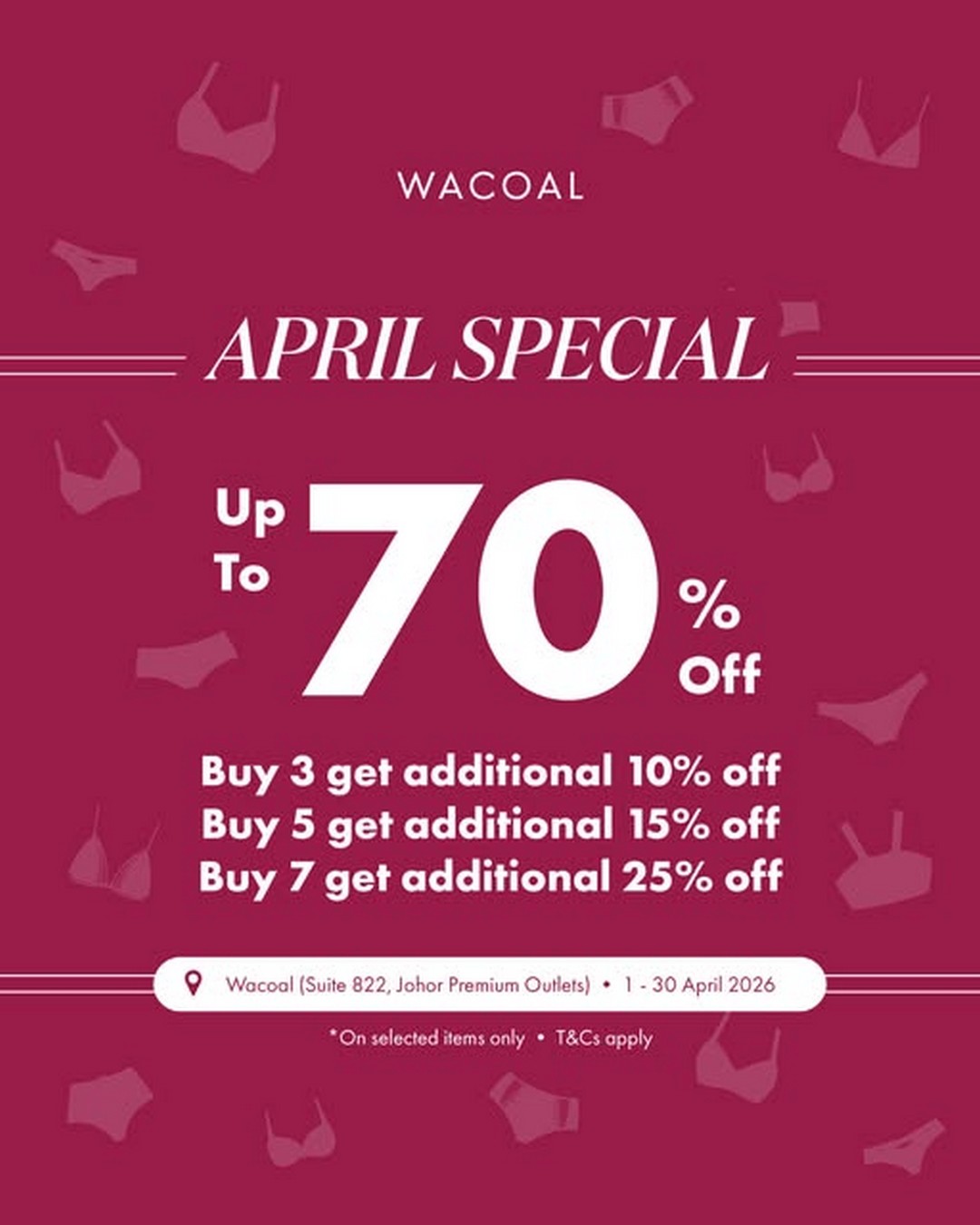If there is one thing savvy shoppers in Singapore know well, it is that crossing the causeway can sometimes lead to some of the best bargains in the region. This April, the spotlight is firmly on Wacoal, as they roll out an impressive factory outlet sale that is well worth planning a short getaway for. Running from 1 to 30 April 2026 at Johor Premium Outlets, this sale brings together substantial discounts and bundle deals that make upgrading everyday essentials feel like a smart investment rather than a splurge.