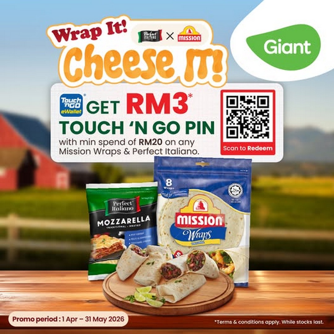 With the promotion ending on 31 May 2026, there’s no better time to visit Giant Malaysia, grab your wraps and cheese, and treat yourself to a cheesy, satisfying meal. Just remember to scan the QR code in-store to redeem your RM3 Touch ‘n Go PIN and make the most of this delightful offer.