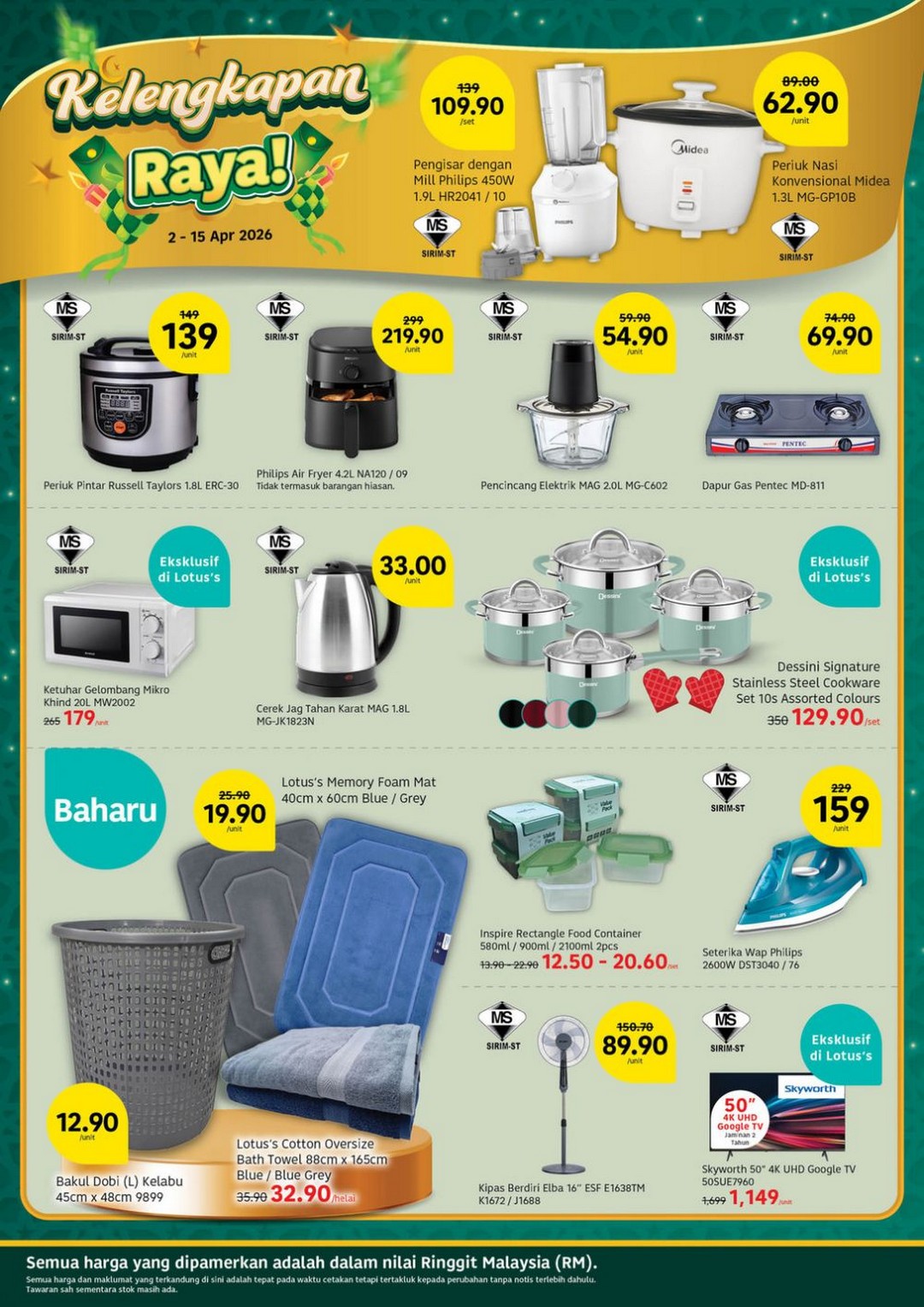 For those wanting to upgrade their home appliances, the catalogue doesn’t disappoint. Philips Air Fryer 4.2L is offered at RM219.90, perfect for those who want to cook healthier meals with less oil. Home entertainment enthusiasts can take advantage of the Skyworth 50″ 4K UHD Google TV at RM1,149, offering a great viewing experience at a reasonable price. These deals make it clear that Lotus’s isn’t just about groceries—they’re providing savings across the board.