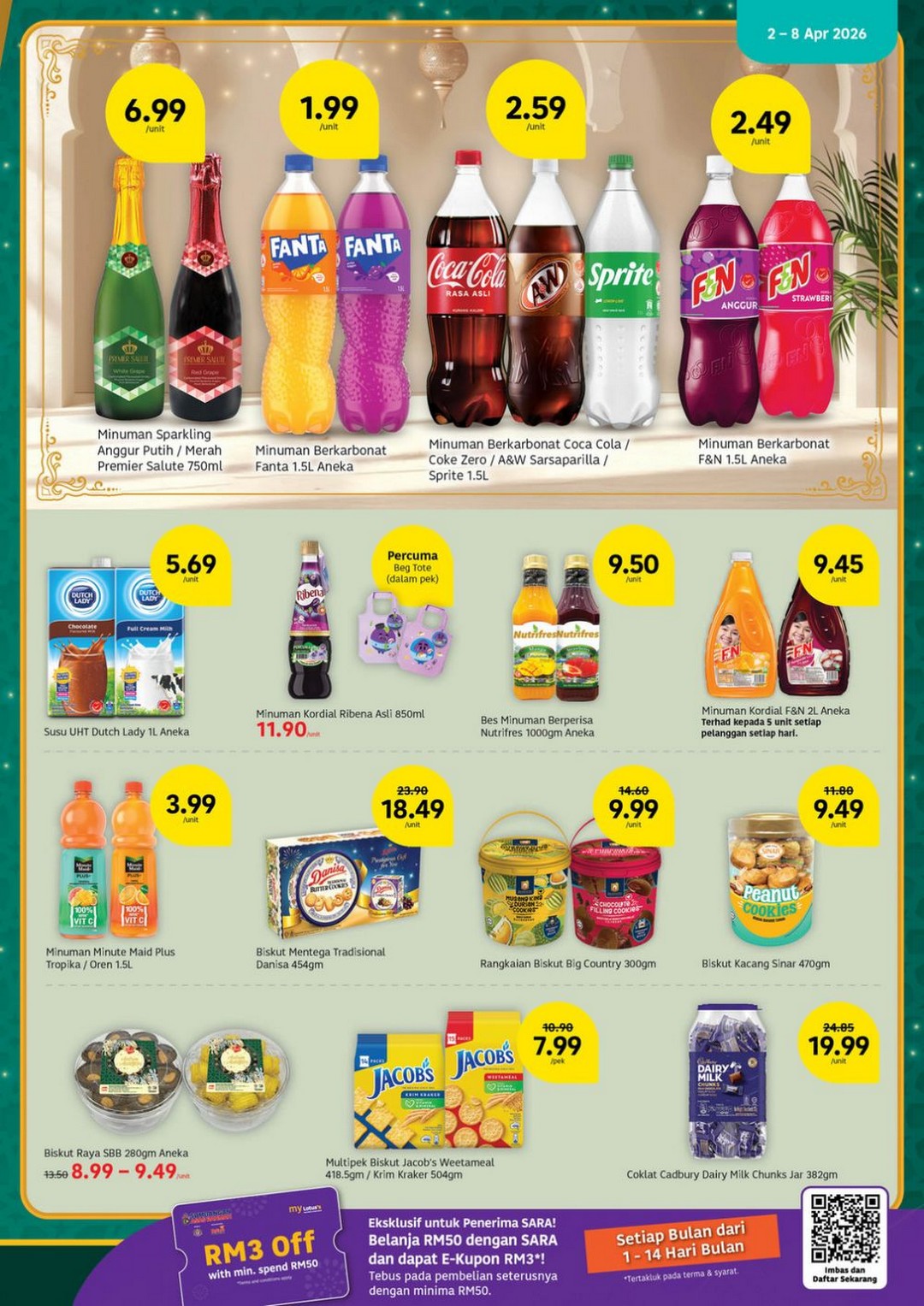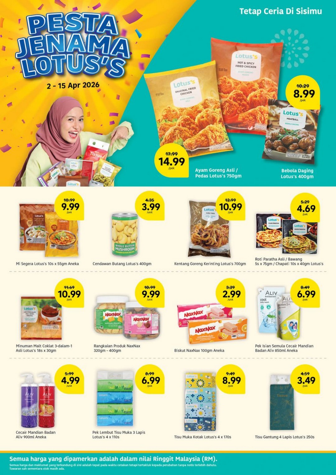 Beyond groceries, Lotus’s has extended deals running until 15 April 2026 on household essentials and items for the upcoming festive season. Rice lovers can grab the Beras Putih Super Import Cap Rambutan (10kg) at RM34.90, which is excellent value for such a large bag. Dishwashing needs are well-covered too, with Sunlight Dishwash Refill (700ml) available for RM4.19, while Breeze Liquid Detergent Refill (3.2kg) is priced at RM16.90, ideal for families looking to save on laundry essentials.