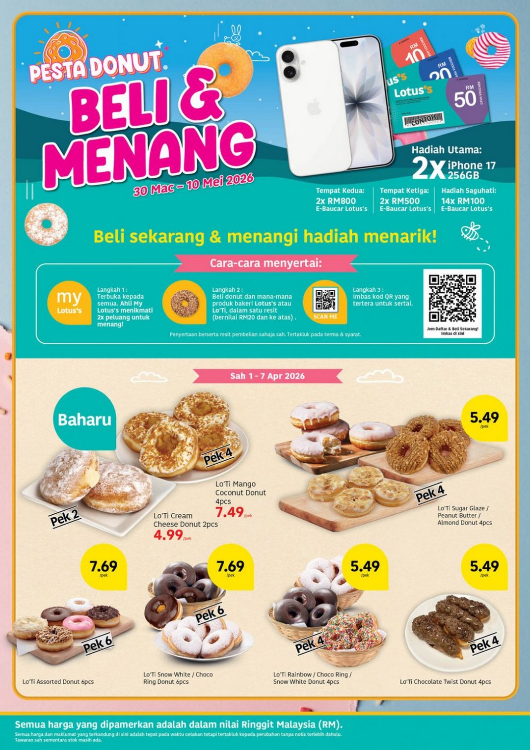Adding some extra excitement, the Pesta Donut contest is running from 30 March to 10 May 2026. Participating is simple: purchase any Lotus’s or Lo’Ti bakery donuts worth RM20 or more in a single receipt, and you’re automatically entered. The grand prize includes two units of the brand-new iPhone 17 (256GB), along with RM800 e-vouchers for the runners-up. It’s a fun way to make everyday purchases more rewarding, and who wouldn’t want a chance to win a new phone while enjoying delicious donuts?