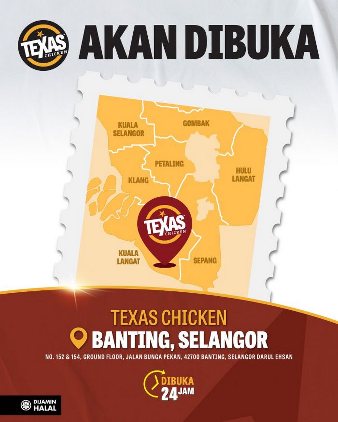 - Venue: Texas Chicken Banting, No. 152 & 154, Ground Floor, Jalan Bunga Pekan, 42700 Banting, Selangor Darul Ehsan