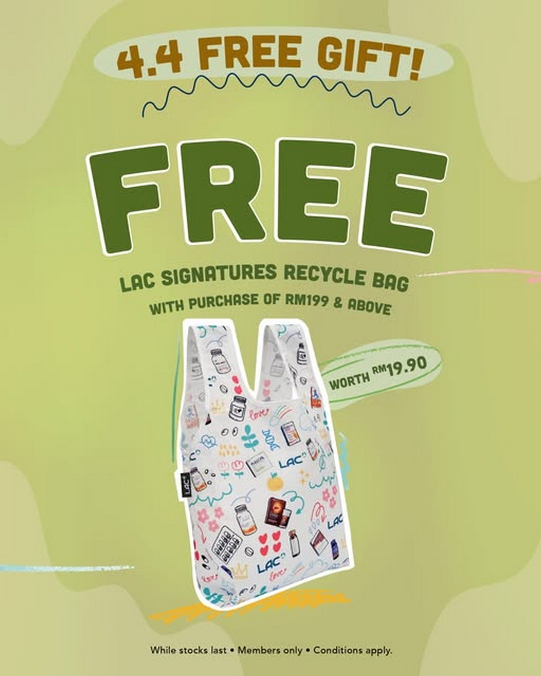 For one day only, on 4 April 2026, LAC Malaysia is running a webstore-exclusive promotion that rewards customers with a complimentary gift when they spend a minimum of RM199. The highlight here is not just the discount or savings, but the thoughtful freebie that comes along with it—a LAC Signature Recycle Bag worth RM19.90.